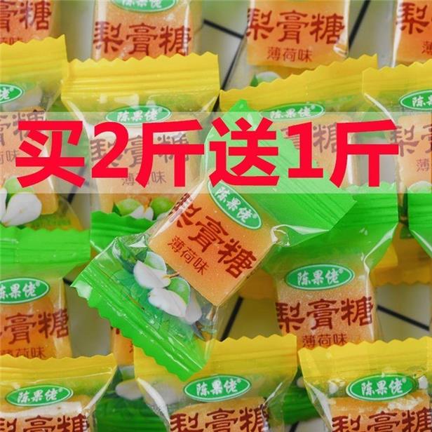 陳果佬梨膏糖薄荷味清涼潤喉薄荷糖過年散裝護嗓咳嗽旗艦店