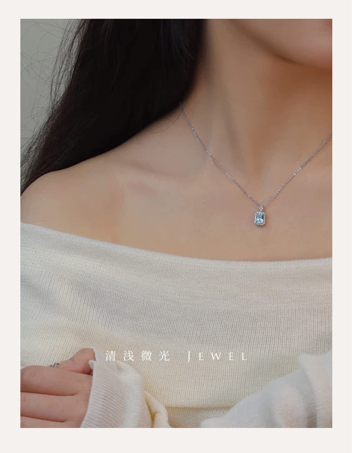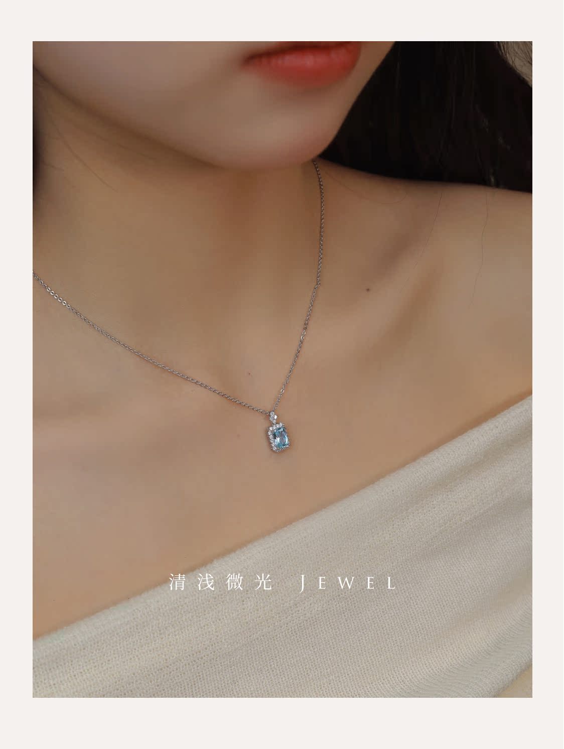 清淺微光 香水百合 復古宮廷風海藍寶托帕石項鏈女925純銀鎖骨鏈