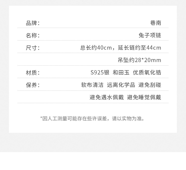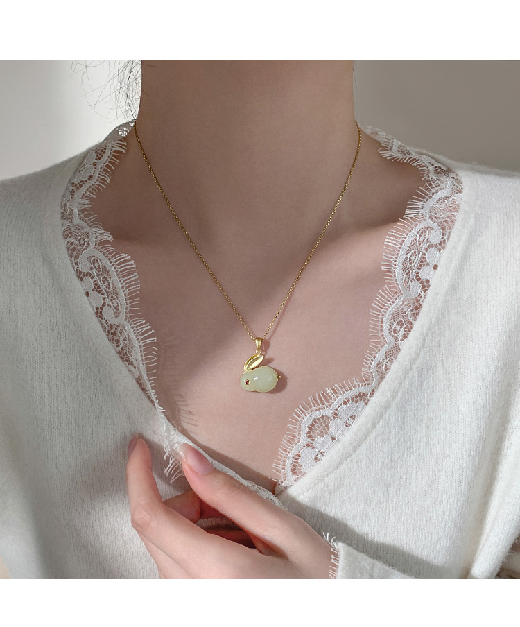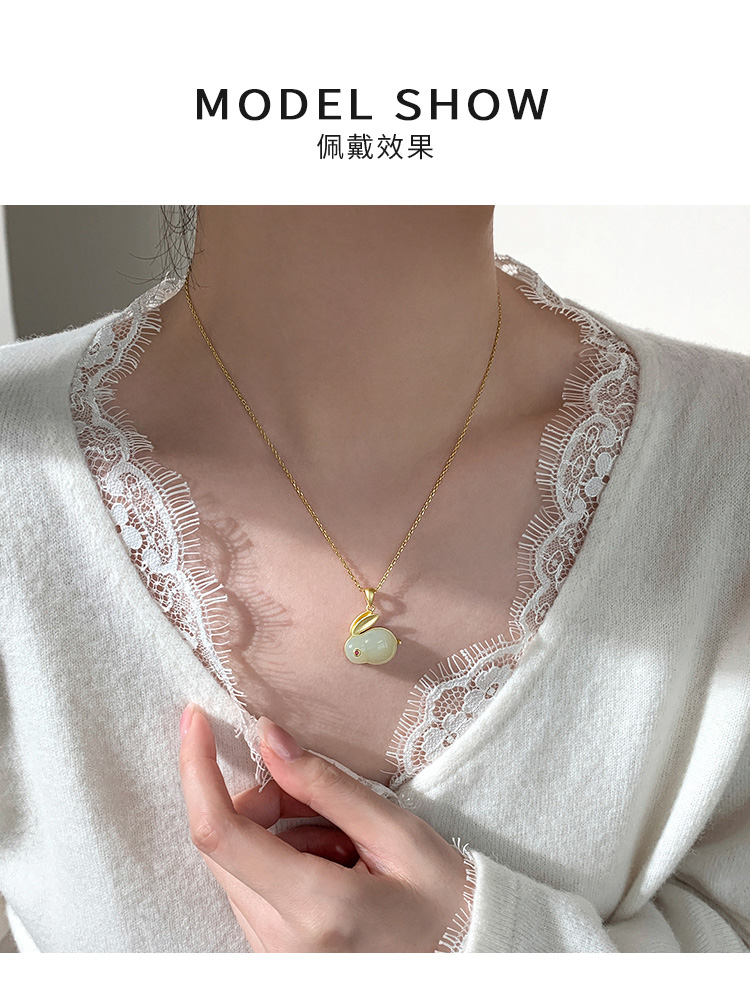 【巷南】925純銀和田玉兔項鏈女小眾鎖骨鏈2023新款爆款輕奢頸鏈