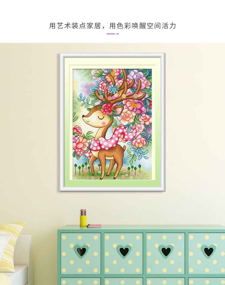 KS十字繡2023年新款卡通房間客廳滿繡手工線繡愛的相伴小鹿姑娘
