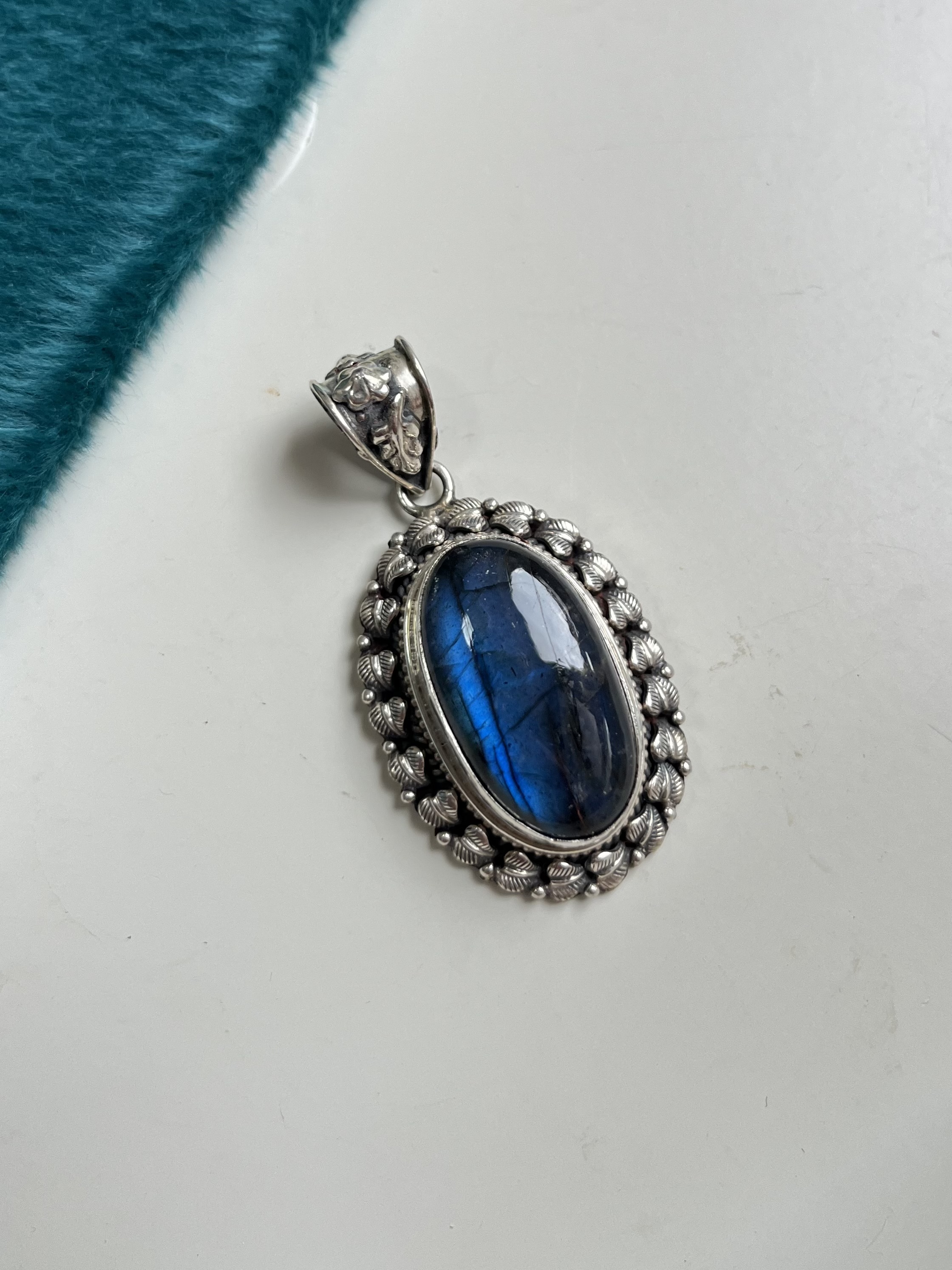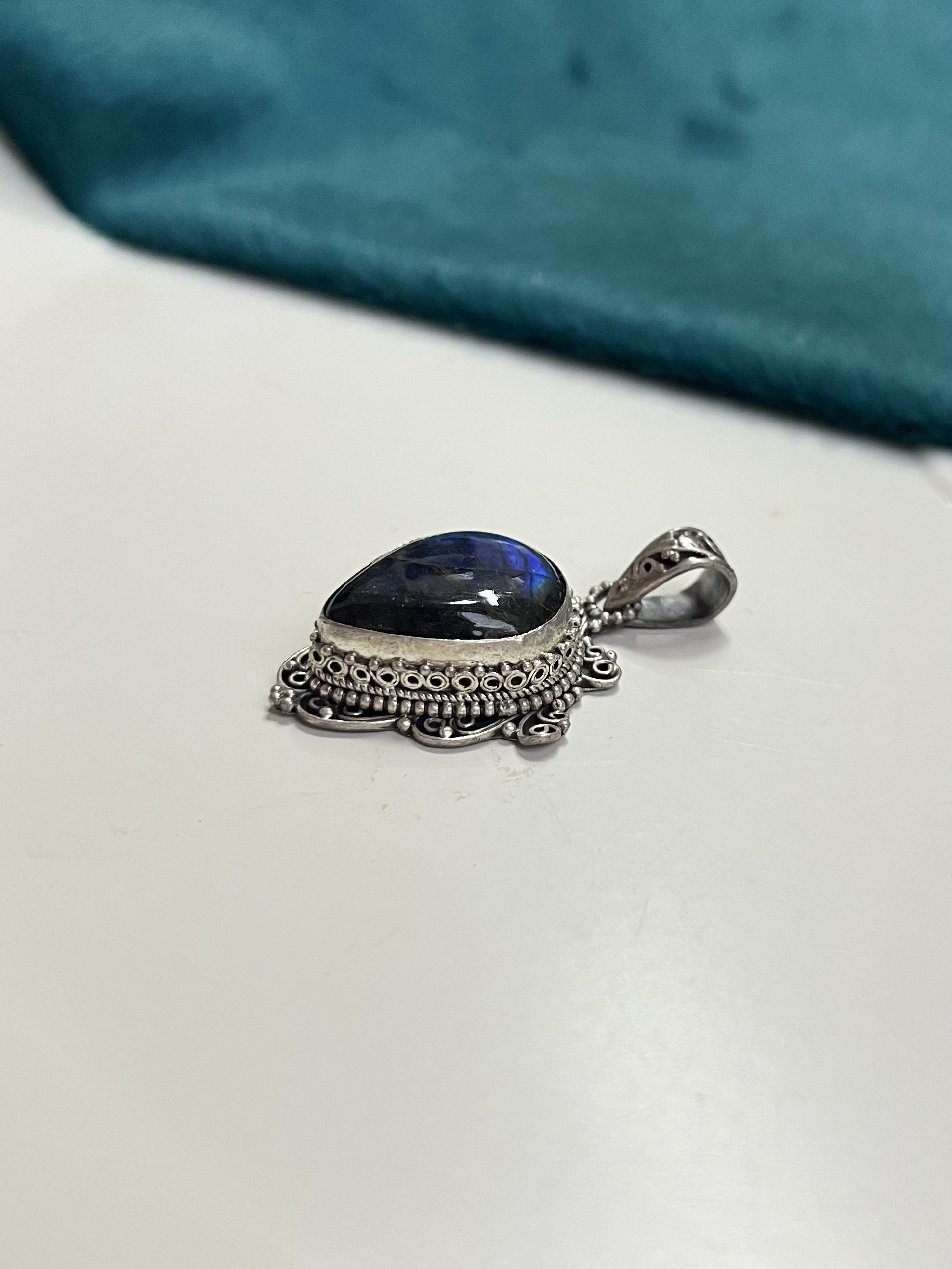 尼泊爾手工純銀吊墜拉長石毛衣鏈秋冬季爆款925銀手工民族風鑲嵌