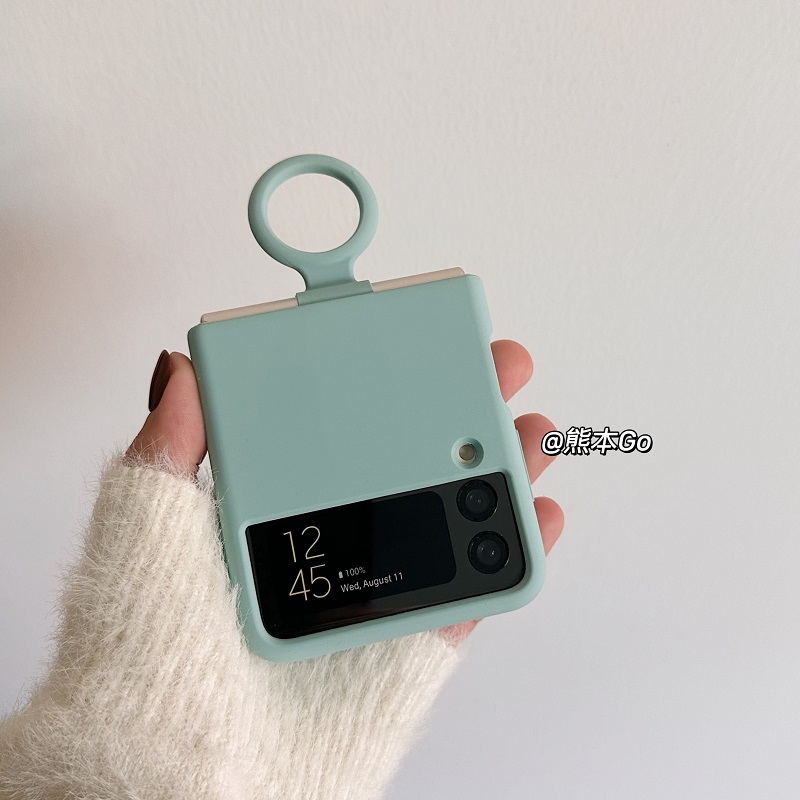 簡約氣質純色適用Z FLIP4手機殼z flip3一體指環扣全包液態硅膠殼F7110折疊軟殼保護套