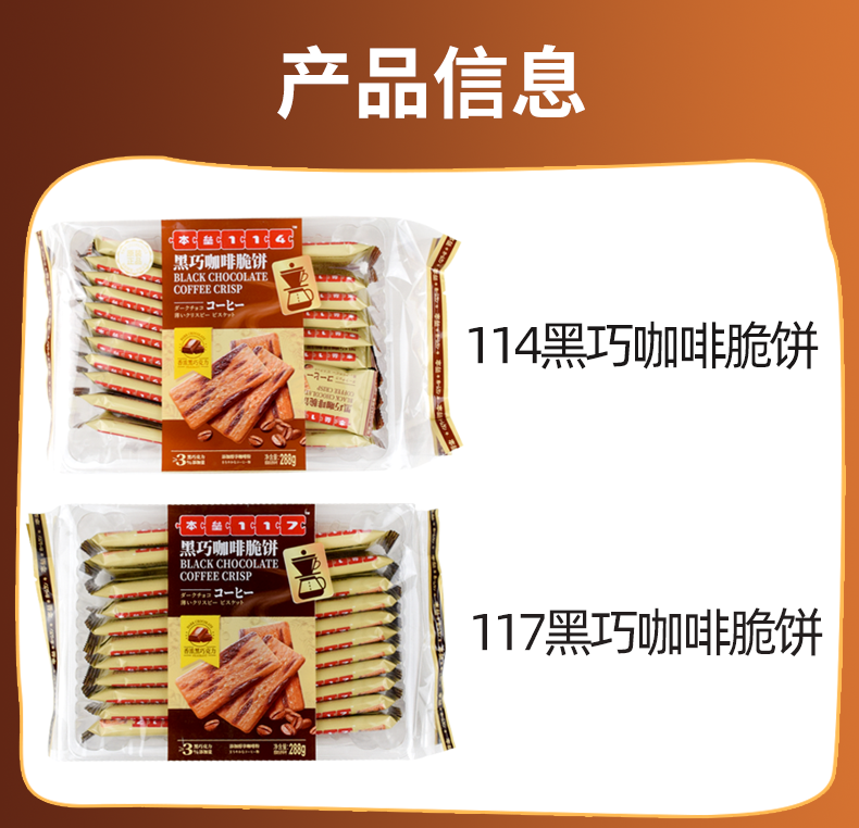 本壘117/114黑巧咖啡脆餅干素食薄脆辦公網紅休閑零食下午茶點心