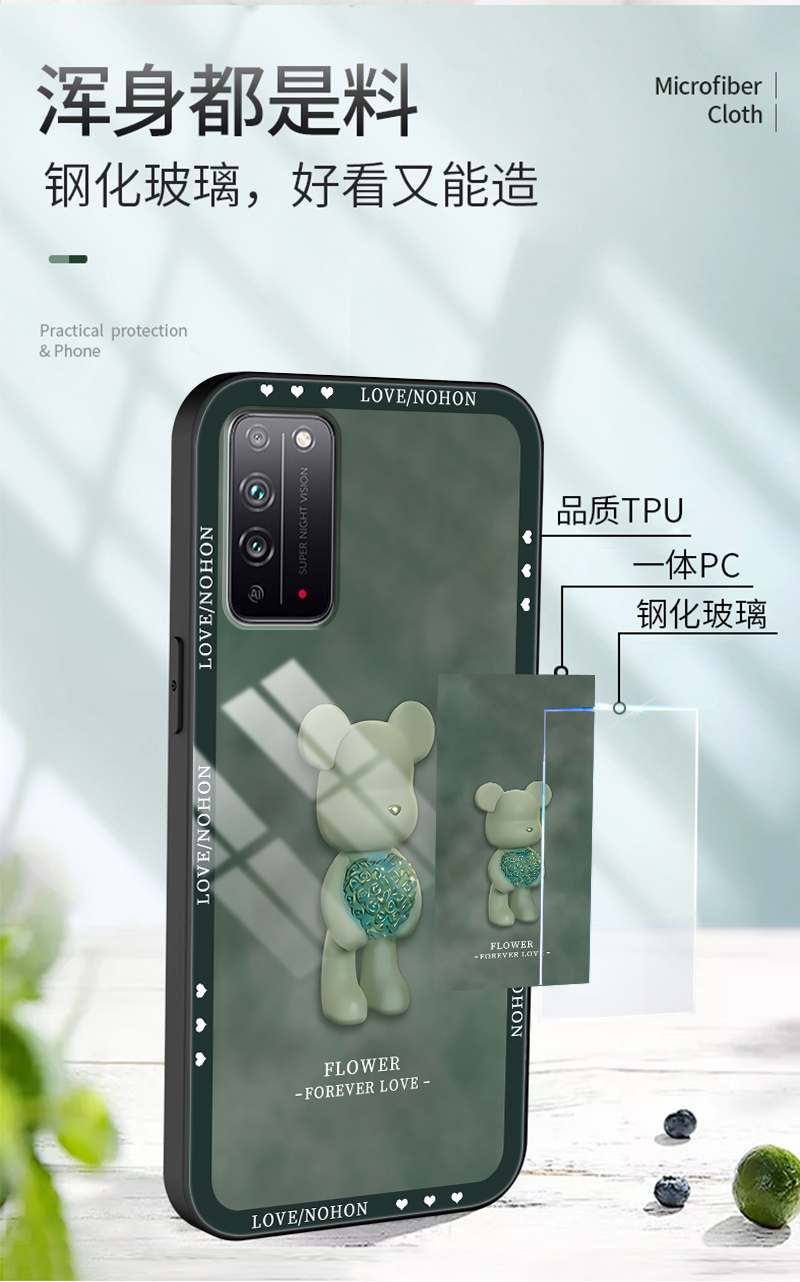 適用榮耀X10手機殼TEL-AN00a華為honor手機套的新款保護套防摔軟殼硅膠玻璃男女款愛心熊網紅可愛情侶卡通潮
