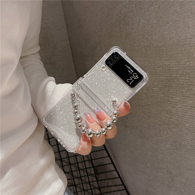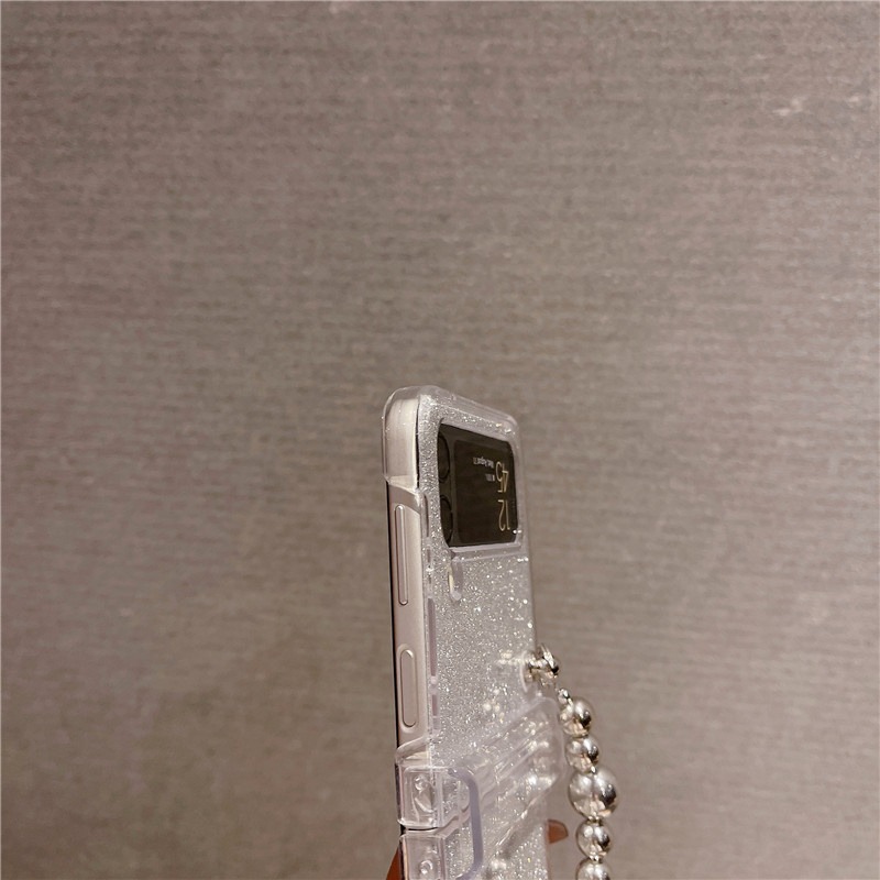 銀色閃粉手提款三星zflip4手機殼折疊屏Galaxy z flip3透明保護套F7210全包防摔殼新款三星W23 Flip4奢華女款