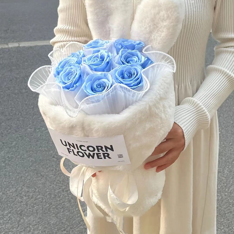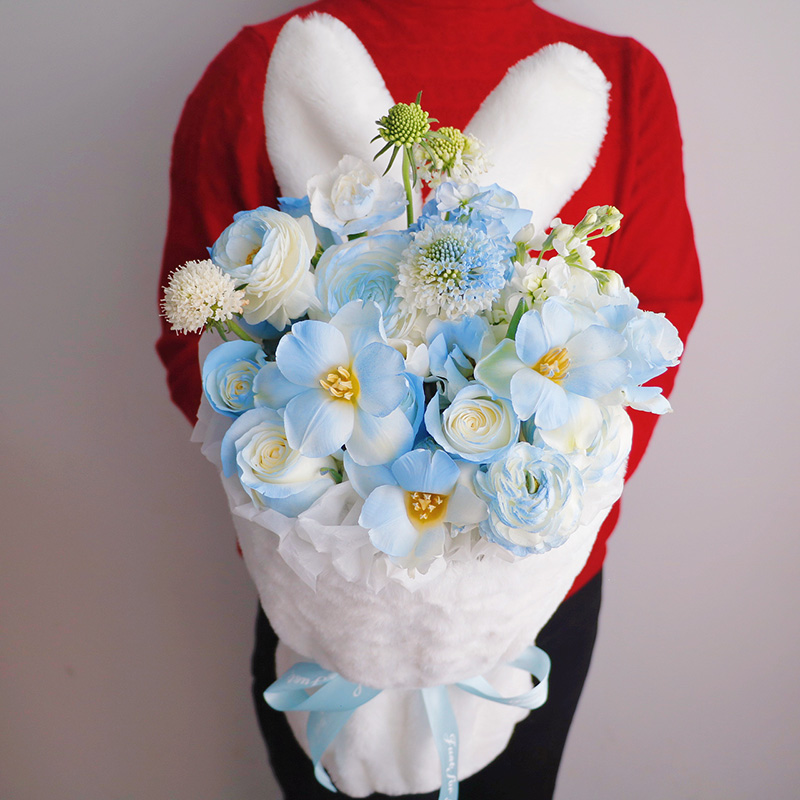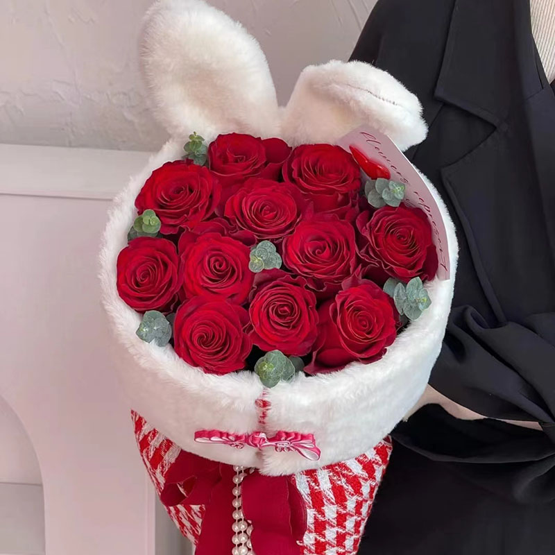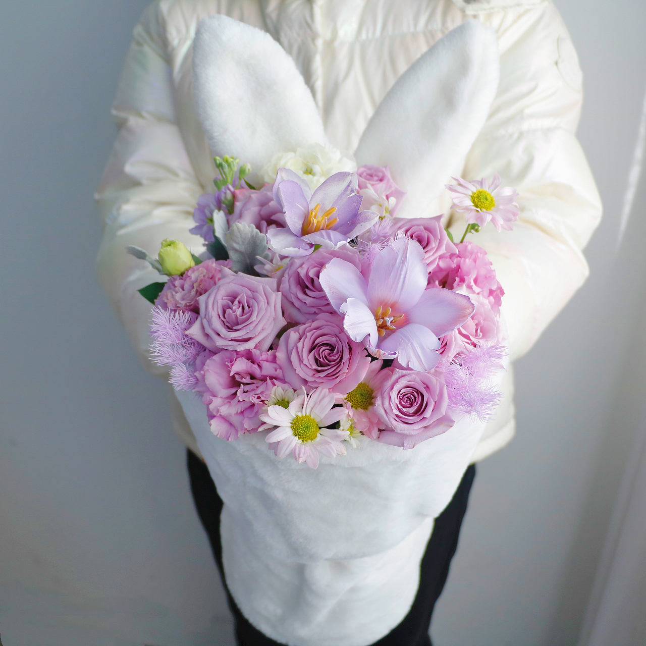情人節拍照兔子耳朵小香風花束玫瑰花粉玫瑰北京同城鮮花送女友
