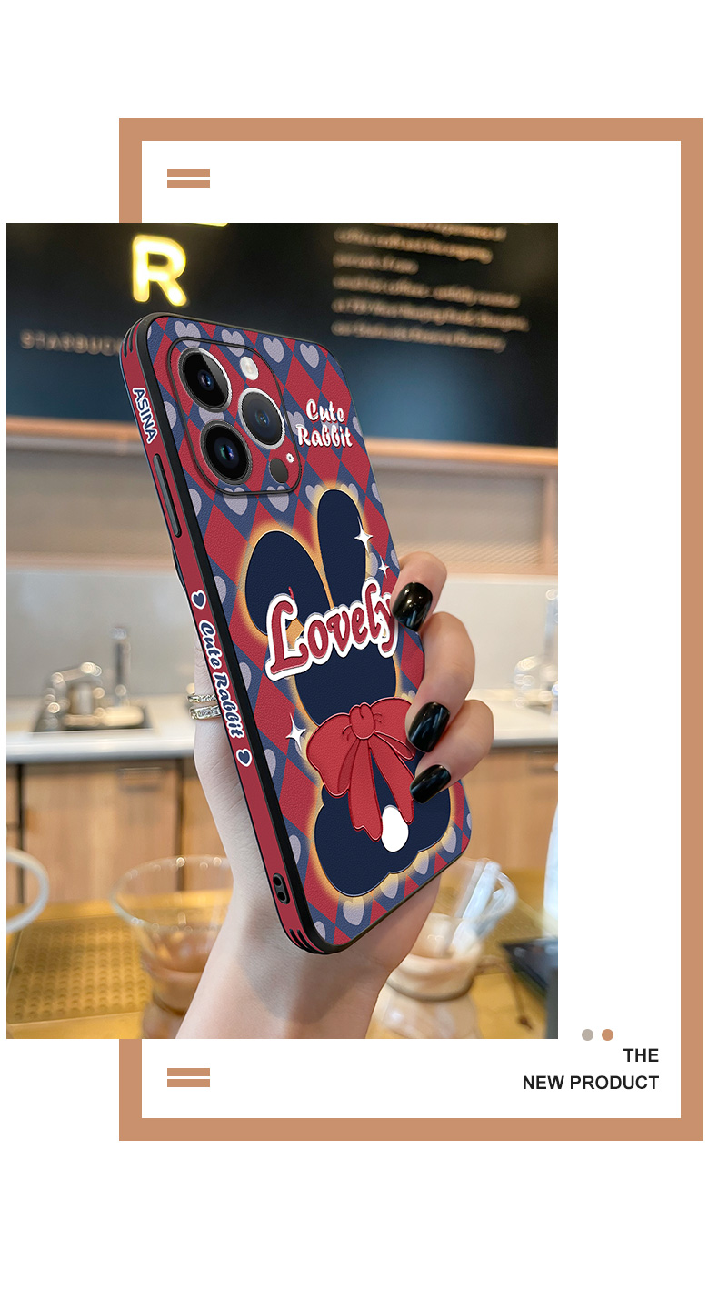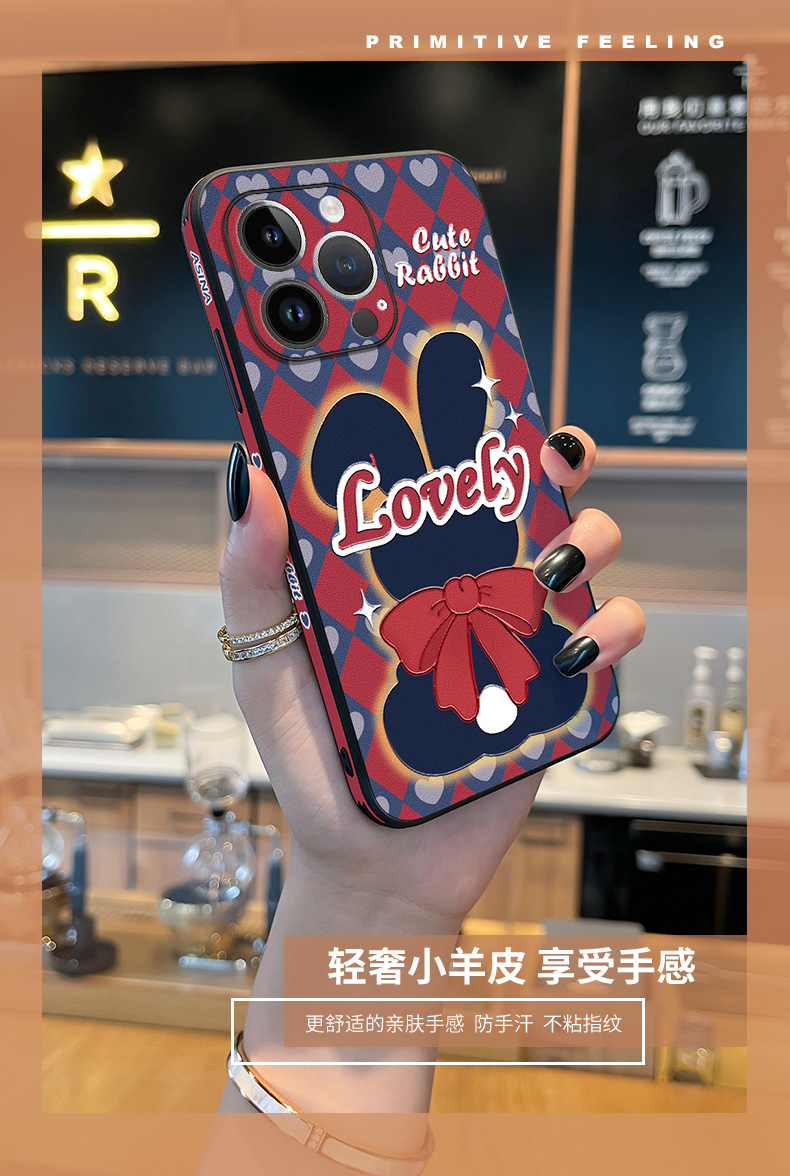 兔子背影適用蘋果14pro手機殼13可愛iPhone14promax新年ip12/11超薄全包por女款小羊皮新款原創卡通防摔plus