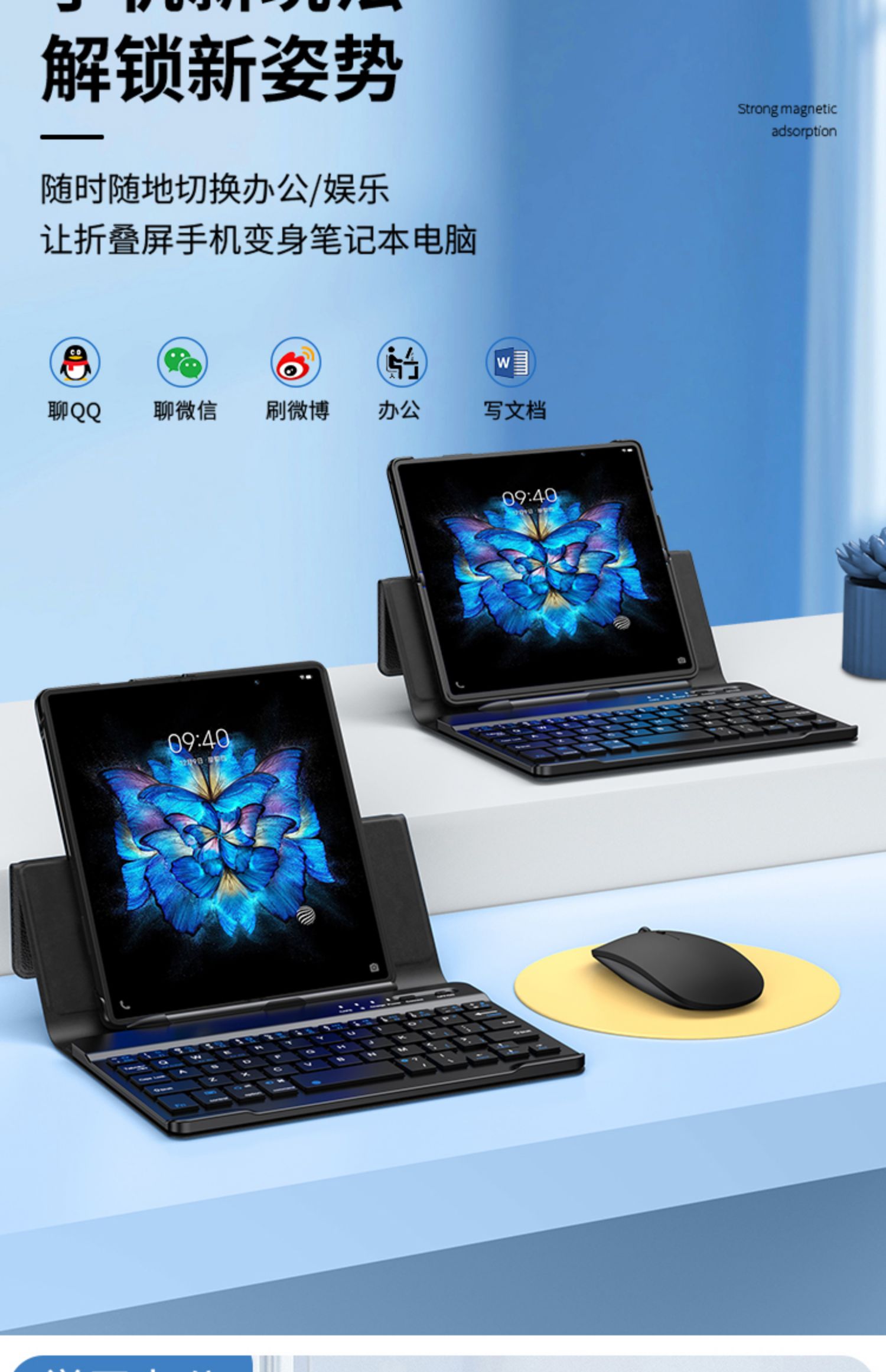 適用vivoXfold2手機殼折疊屏新款藍牙鍵盤觸控磁吸拆分VIVO平板鍵盤保護殼帶筆槽電腦鼠標一體防摔皮套2023款