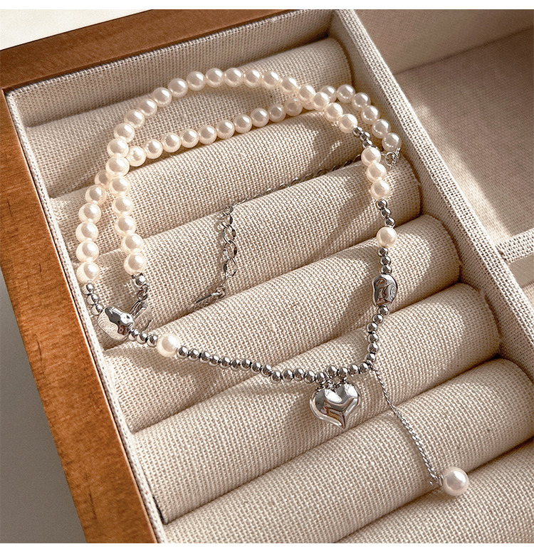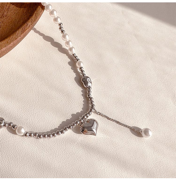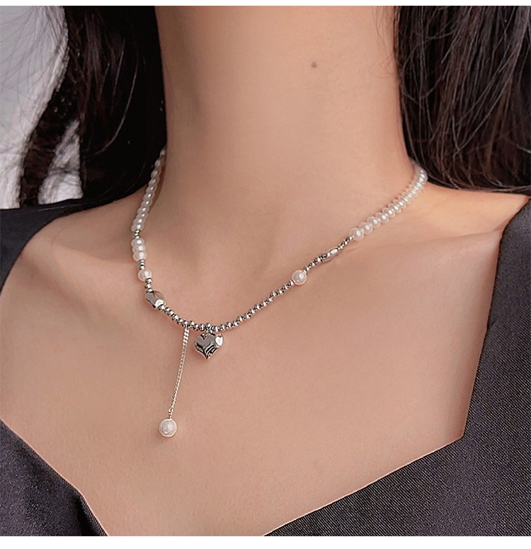 小眾設計巴洛克風格珍珠拼接金屬愛心項鏈女鎖骨鏈輕奢吊墜高級感