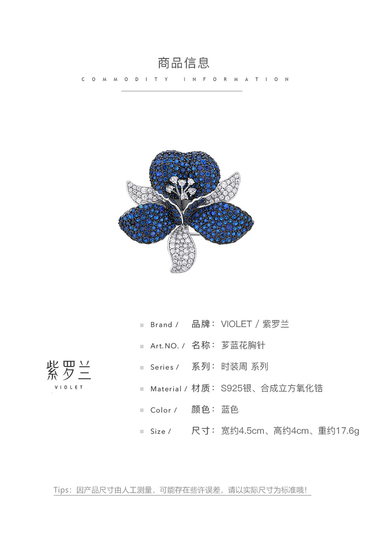 【紫羅蘭正版】薌藍花S925純銀胸針高檔女藍色花朵胸花別針小眾潮