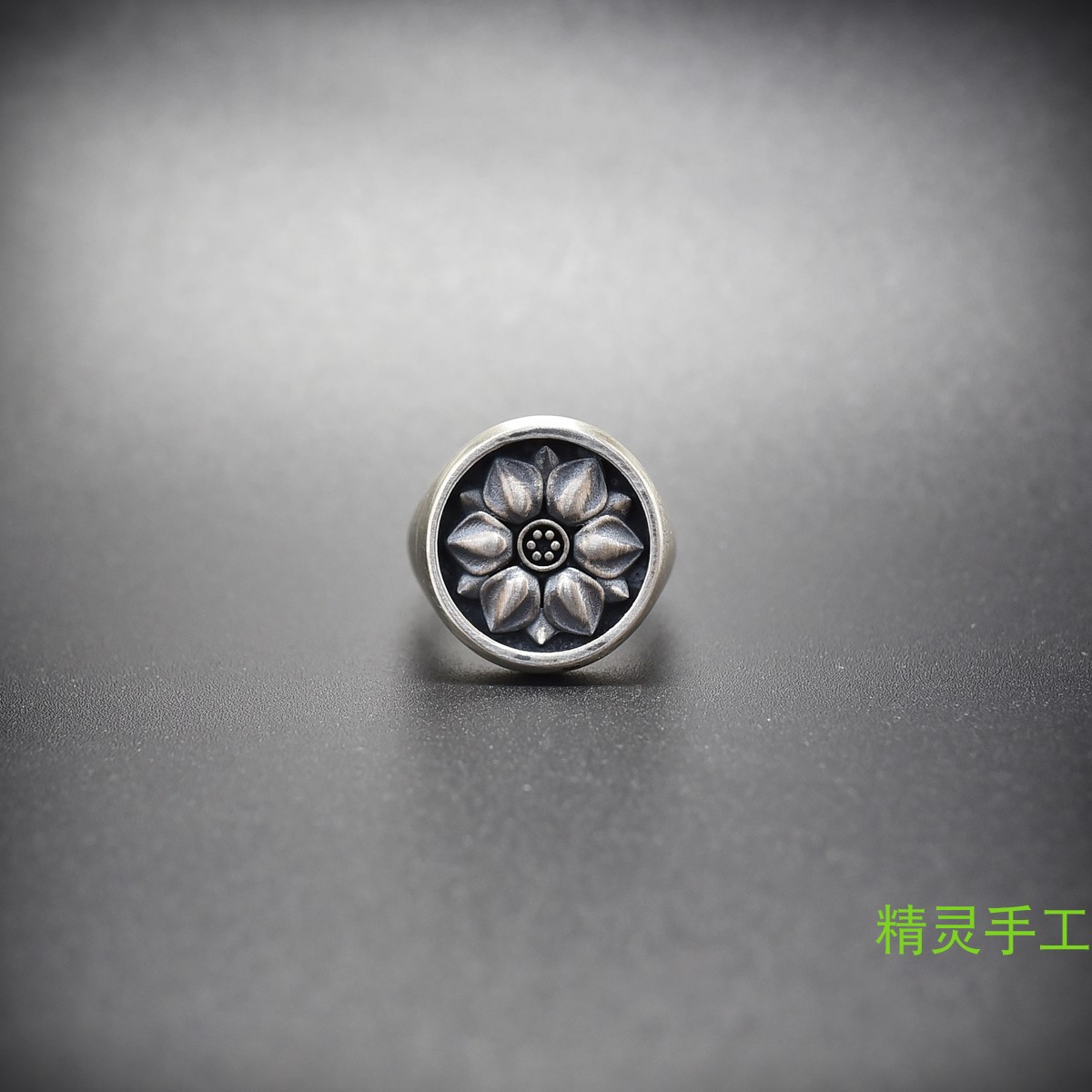 偶嶼雷火系列原創純銀仰蓮做舊指環