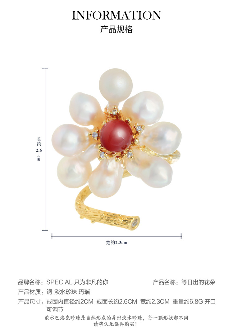 SPECIAL國風淡水珍珠戒指開口可調節小眾設計2023新款潮送禮