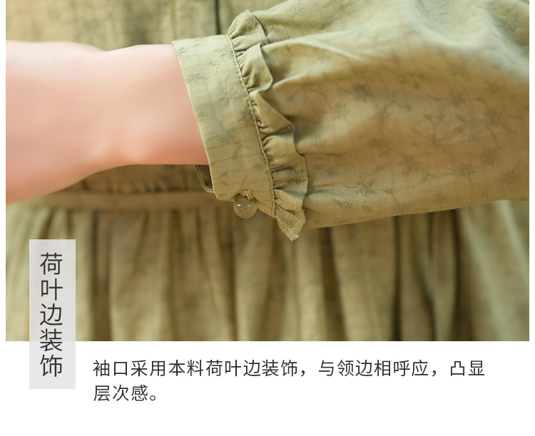 纻衣綠色天絲設計感長袖連衣裙女2023秋季新品小眾氣質中長裙子