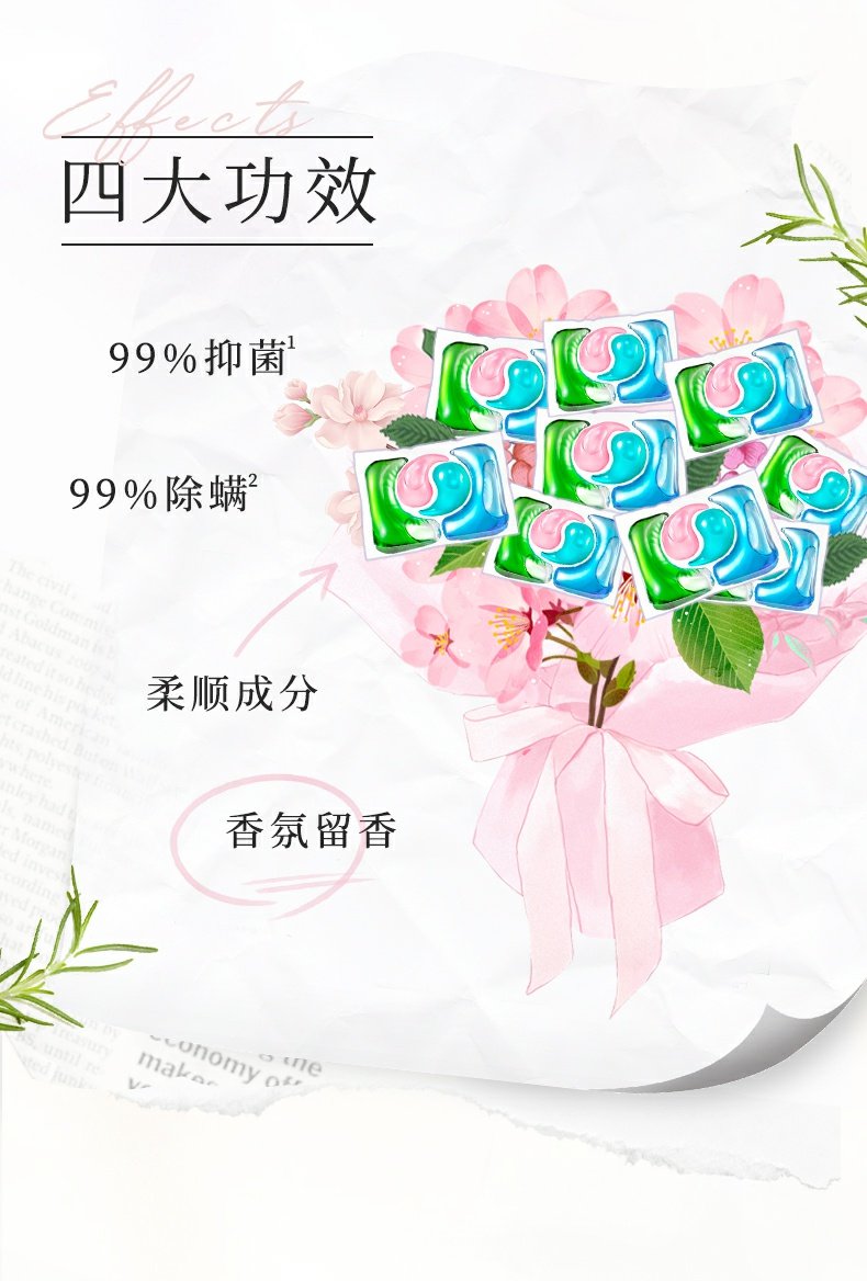 at菁華四合一櫻花洗衣凝珠除菌除螨留香濃縮洗衣液