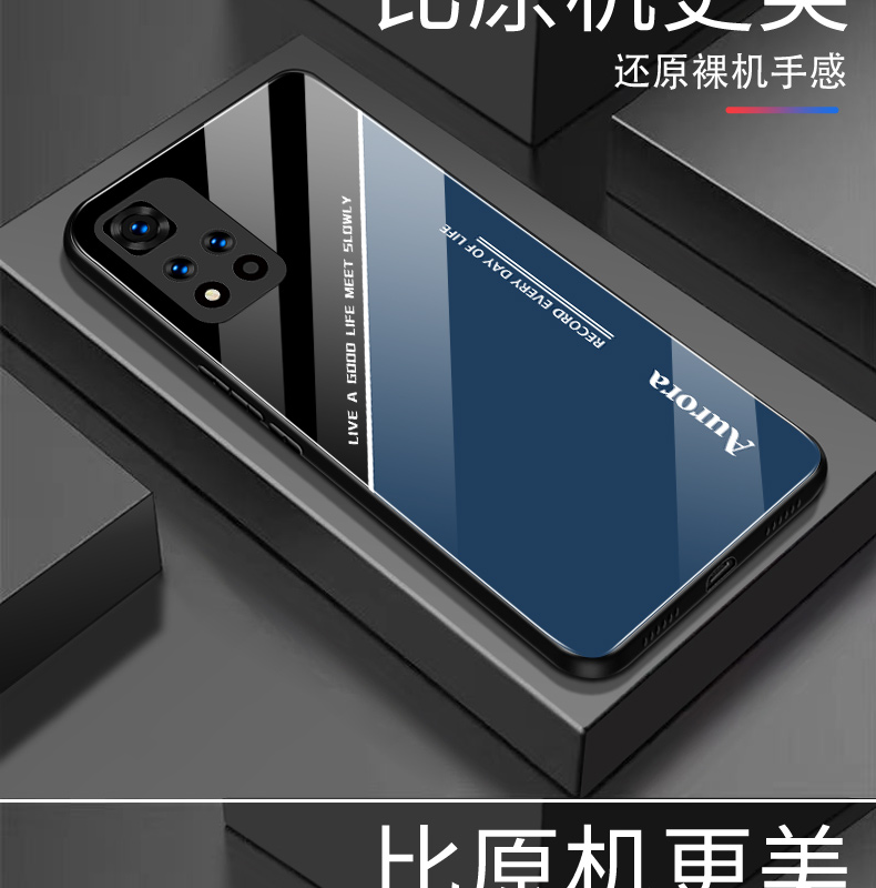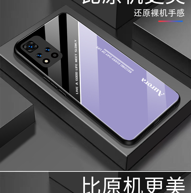 適用紅米NOTE11PRO+手機殼玻璃redminote11pro+超薄極光線條男女防摔全包外殼