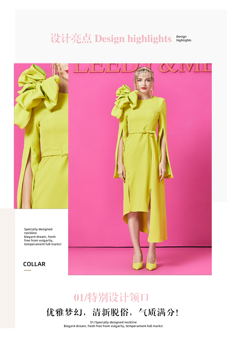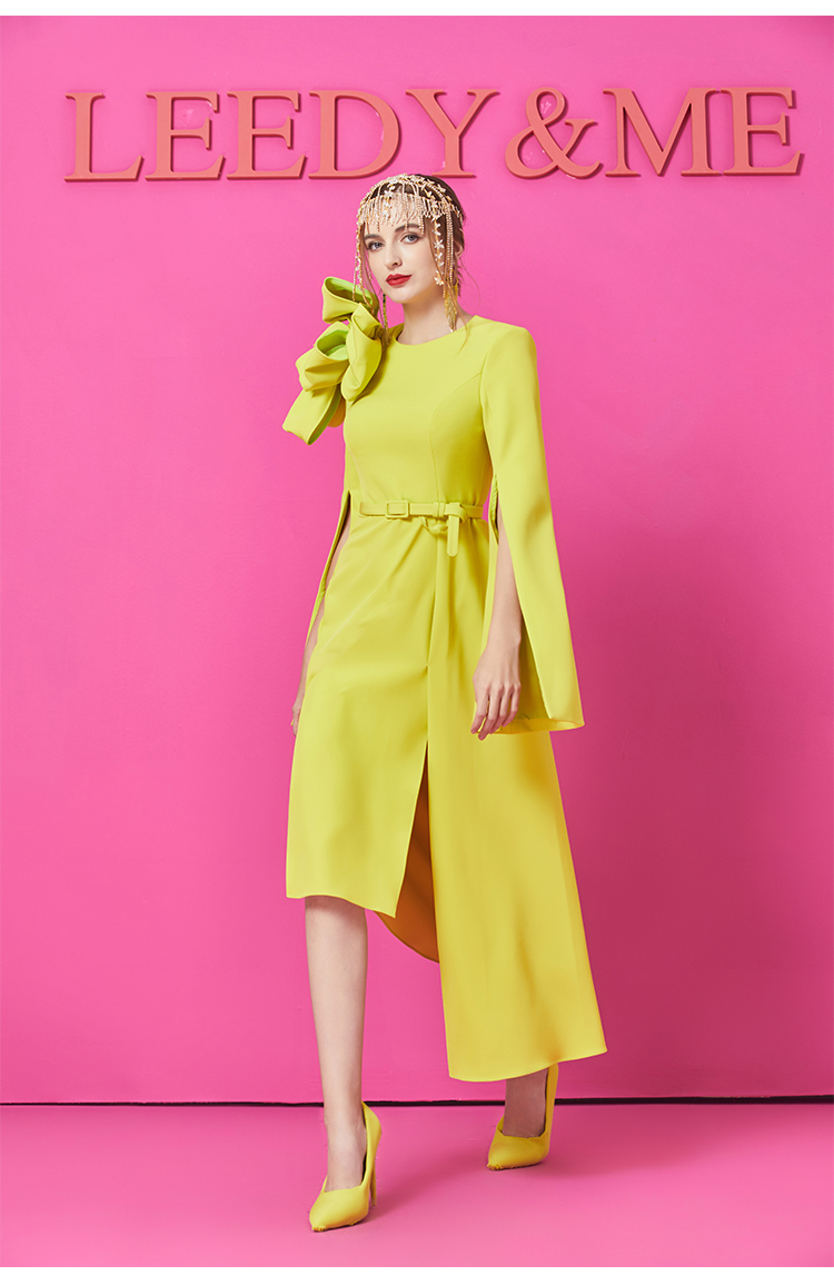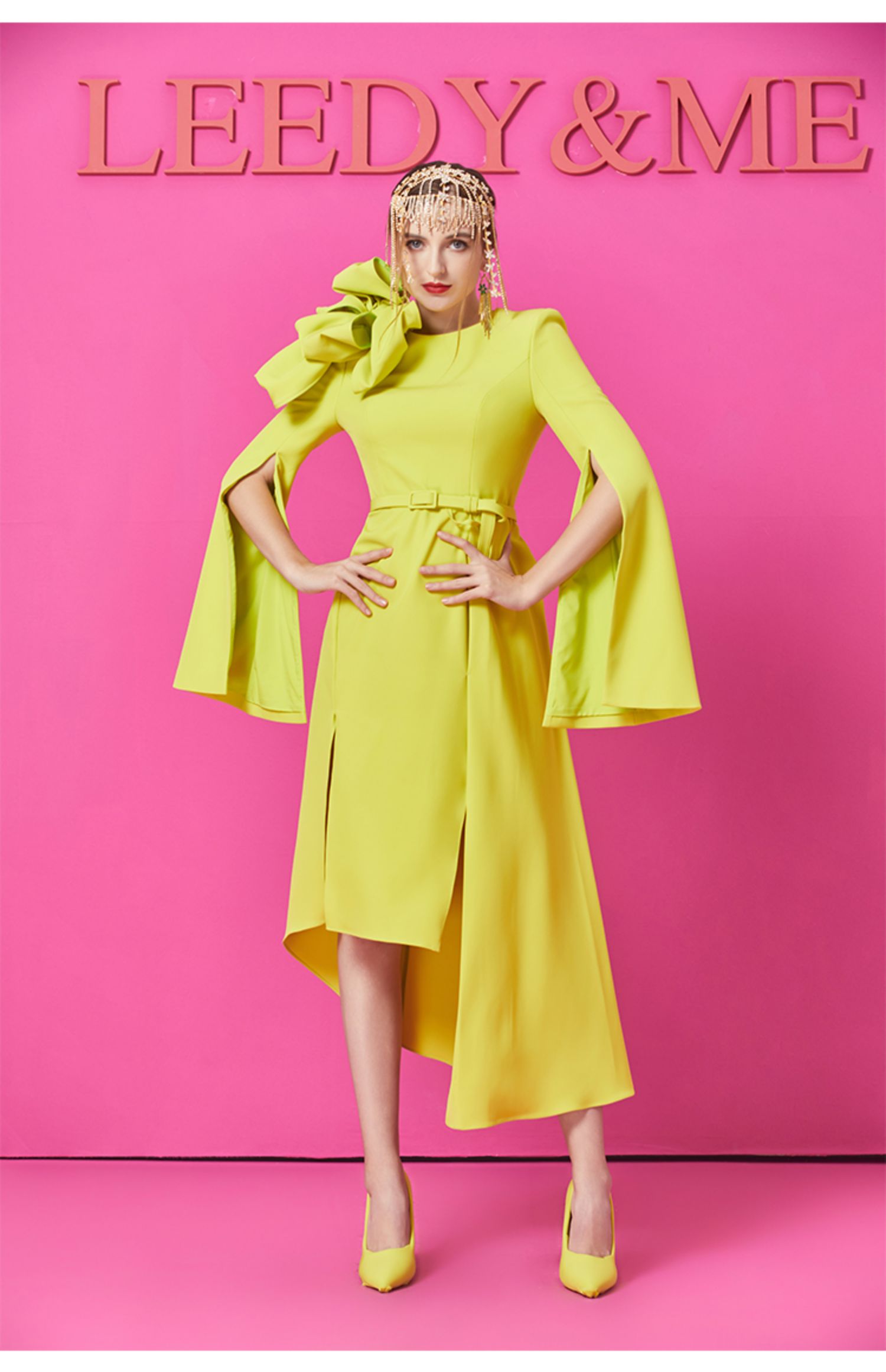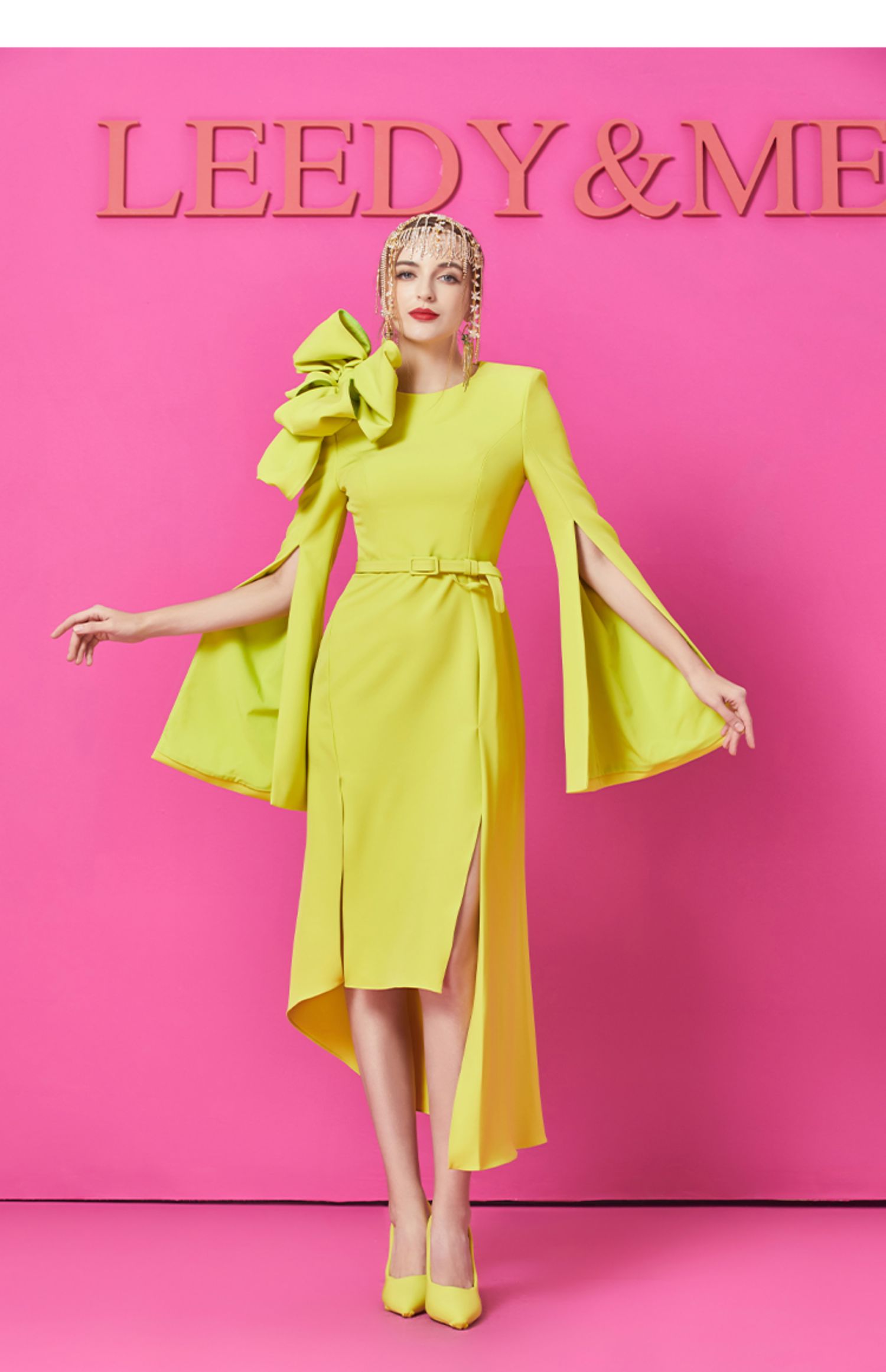 LEEDY&ME新款高定驚艷日常氣質名媛修身連衣裙顯白輕奢長袖禮服