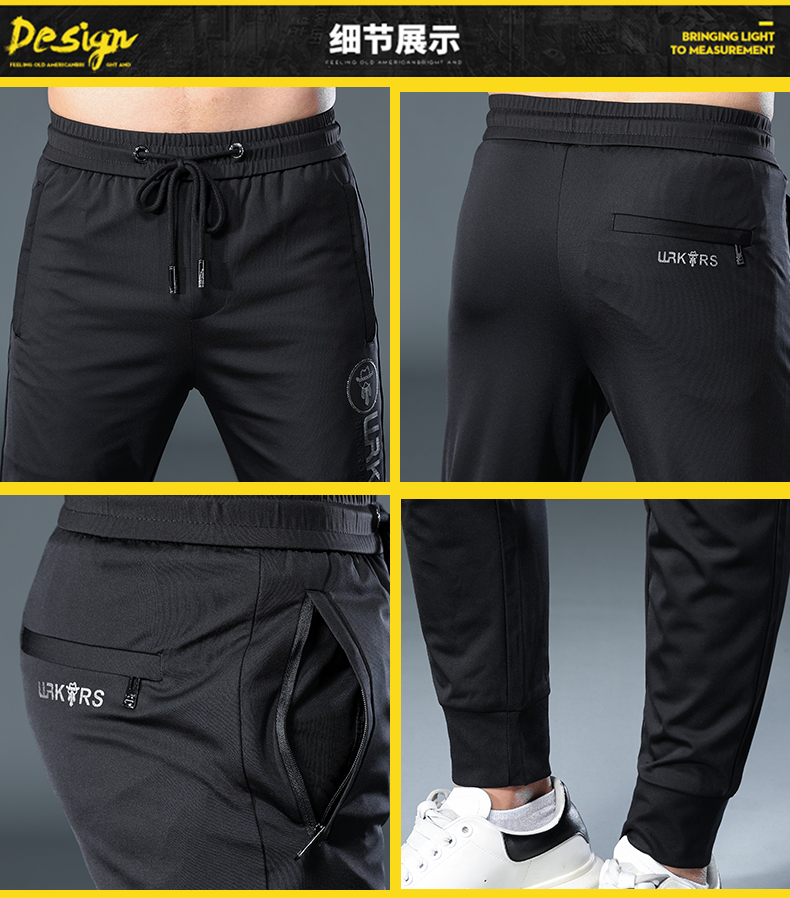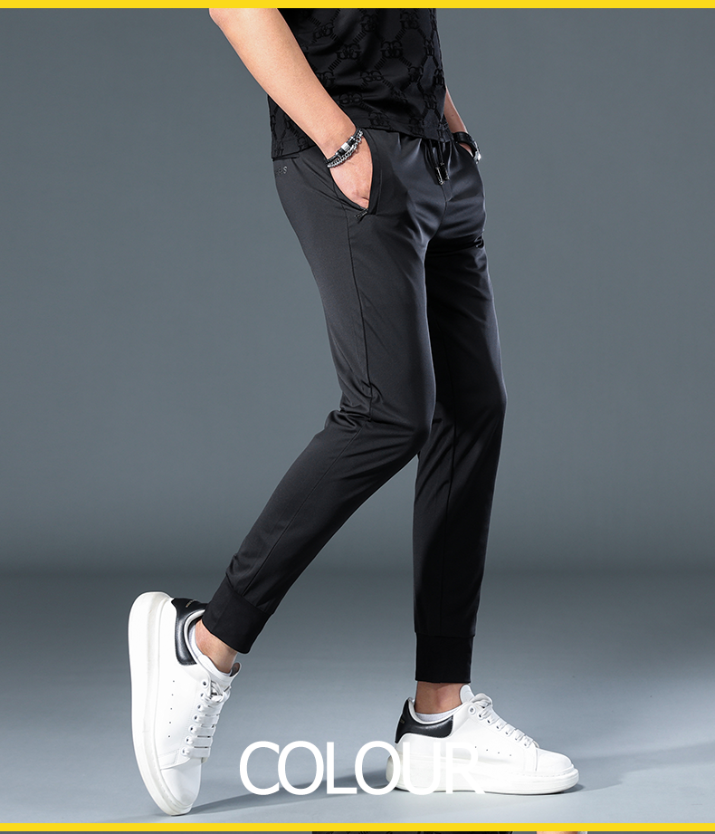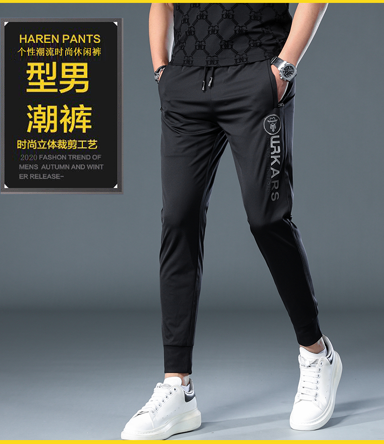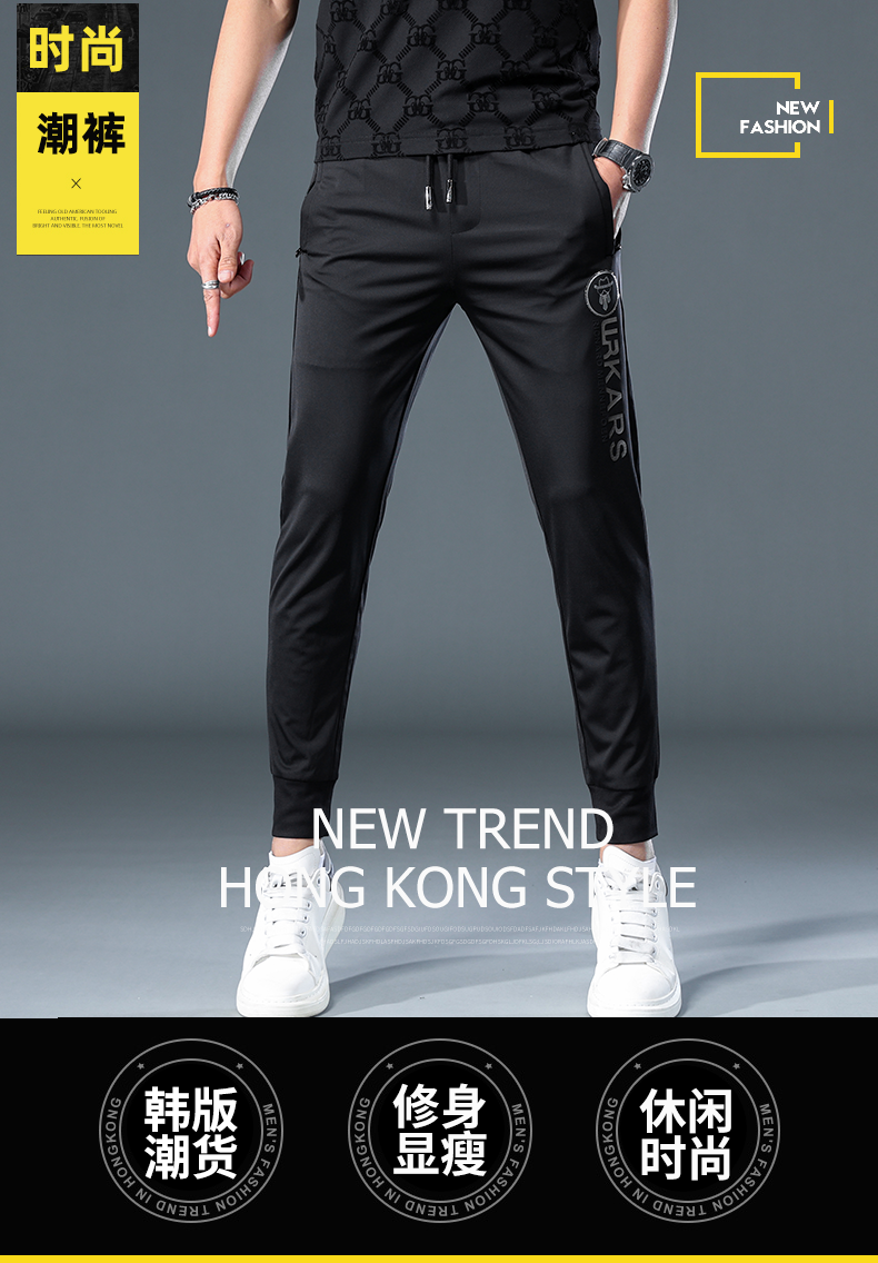 2023年夏季薄款褲子男束腳衛褲男士潮流修身休閑褲冰絲百搭運動褲