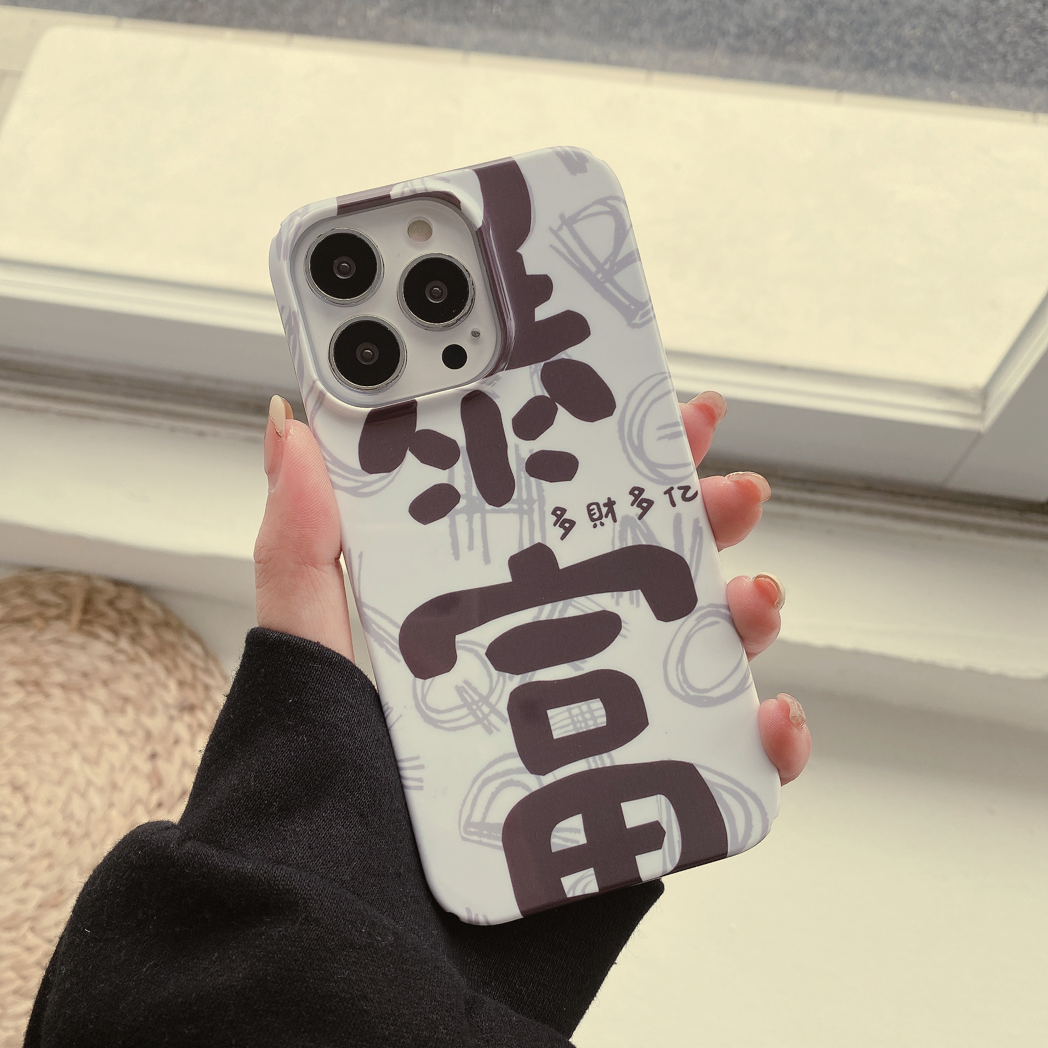 紅色發財書法兔年紅中國風磨砂手機殼適用于iPhone14Promax半包菲林殼12/13mini防摔保護套一加手機殼10/9/8