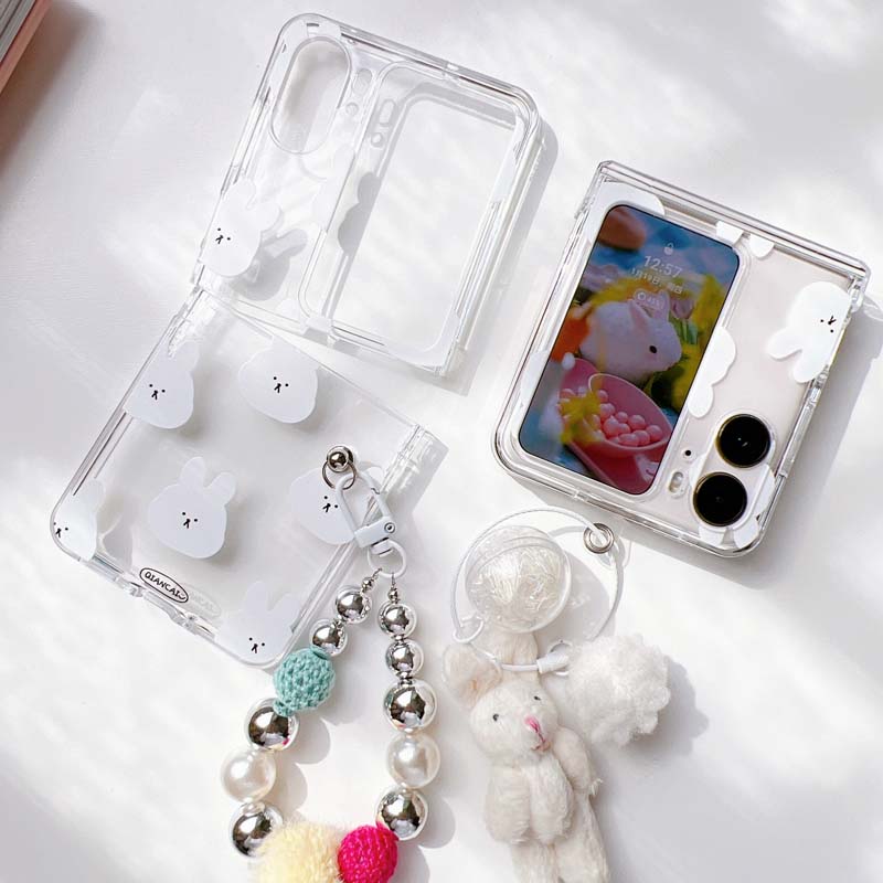 適用于oppoFindN2flip手機殼N3flip上下折疊透明硬殼保護套小兔子小清新小眾簡約卡通可愛少女心ins風日韓