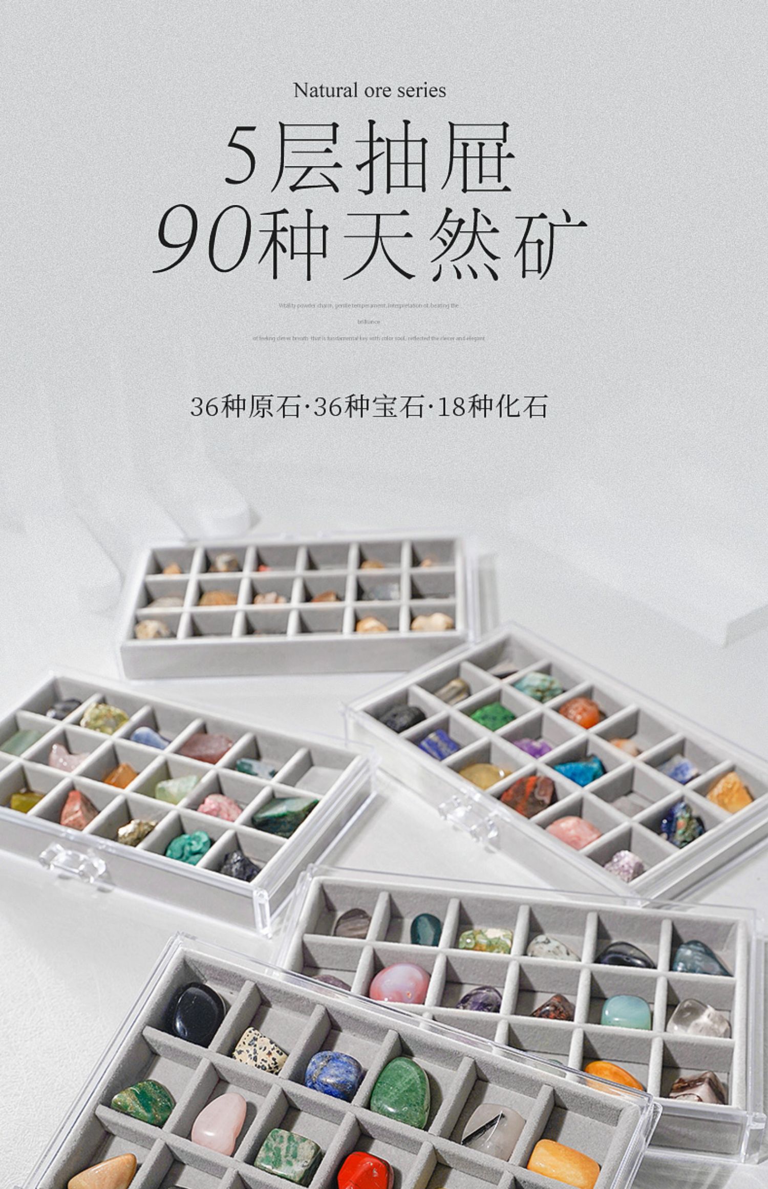 天縱晶華90種礦物原石打磨石化石套裝水晶礦石奇石寶石標本擺件