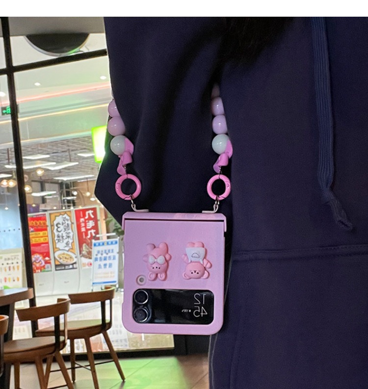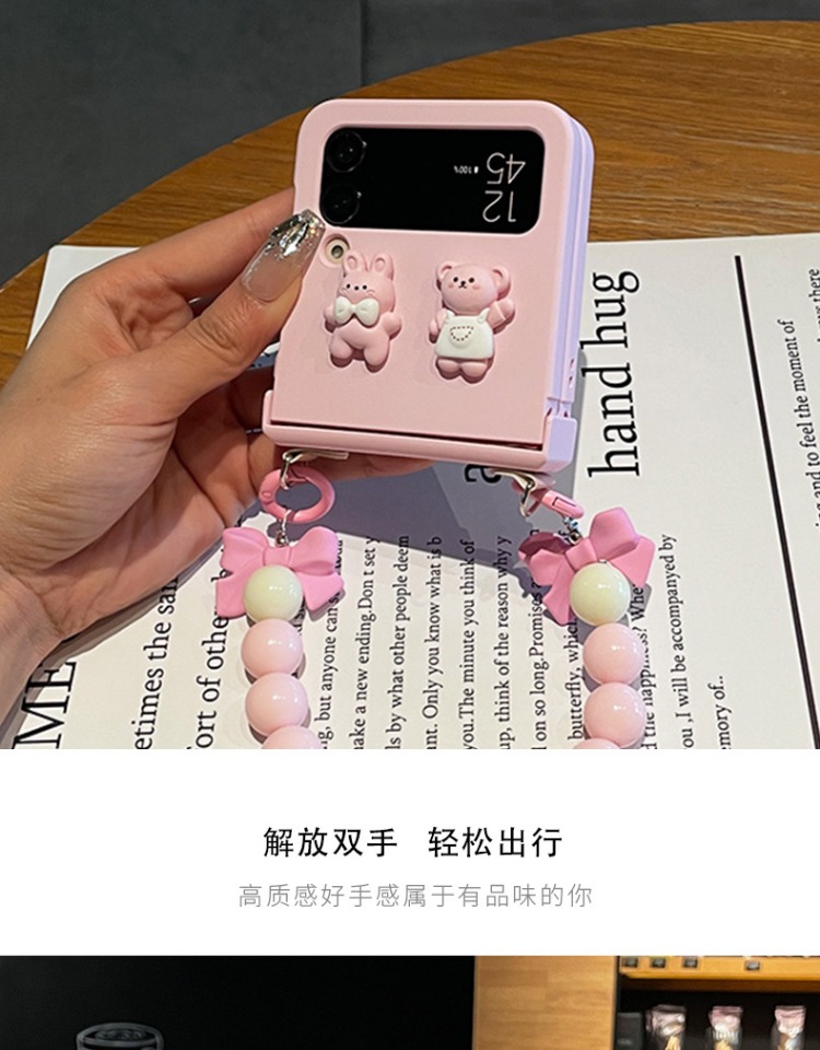 卡通兔熊適用三星zflip5手機殼新款膚感鉸鏈全包折疊zflip4保護殼手提掛鏈可愛w23flip超薄防摔粉zflip3外殼