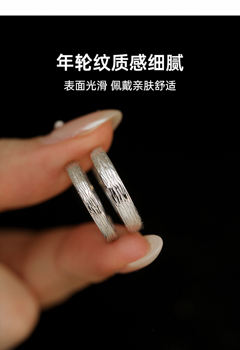 飾悟銀飾年輪情侶對戒指2023年新款定制刻字戒指情侶戒指純銀一對