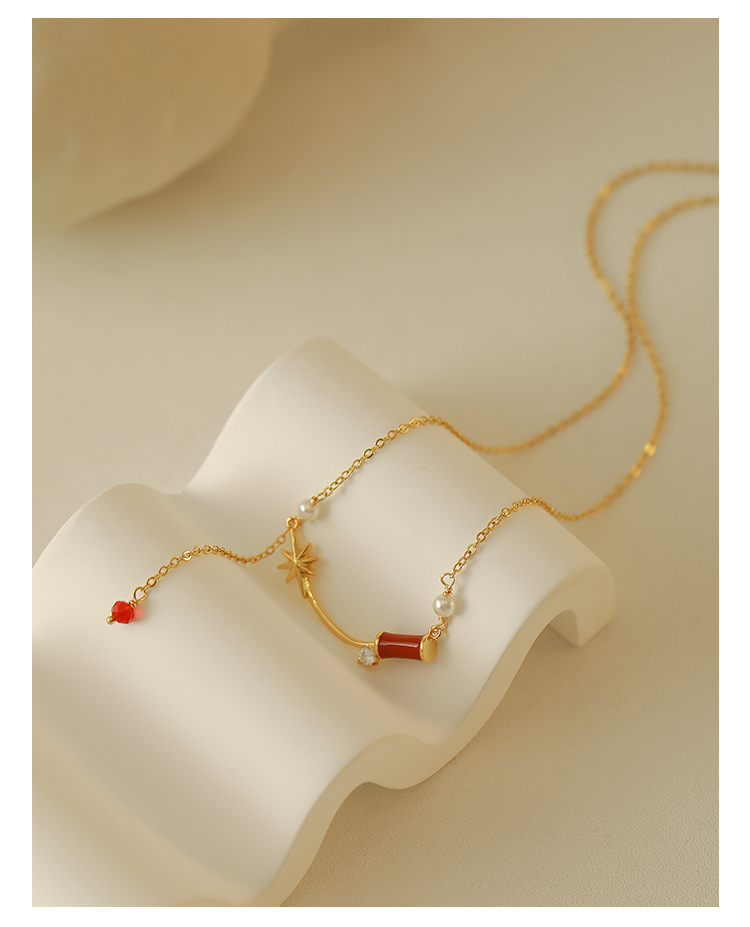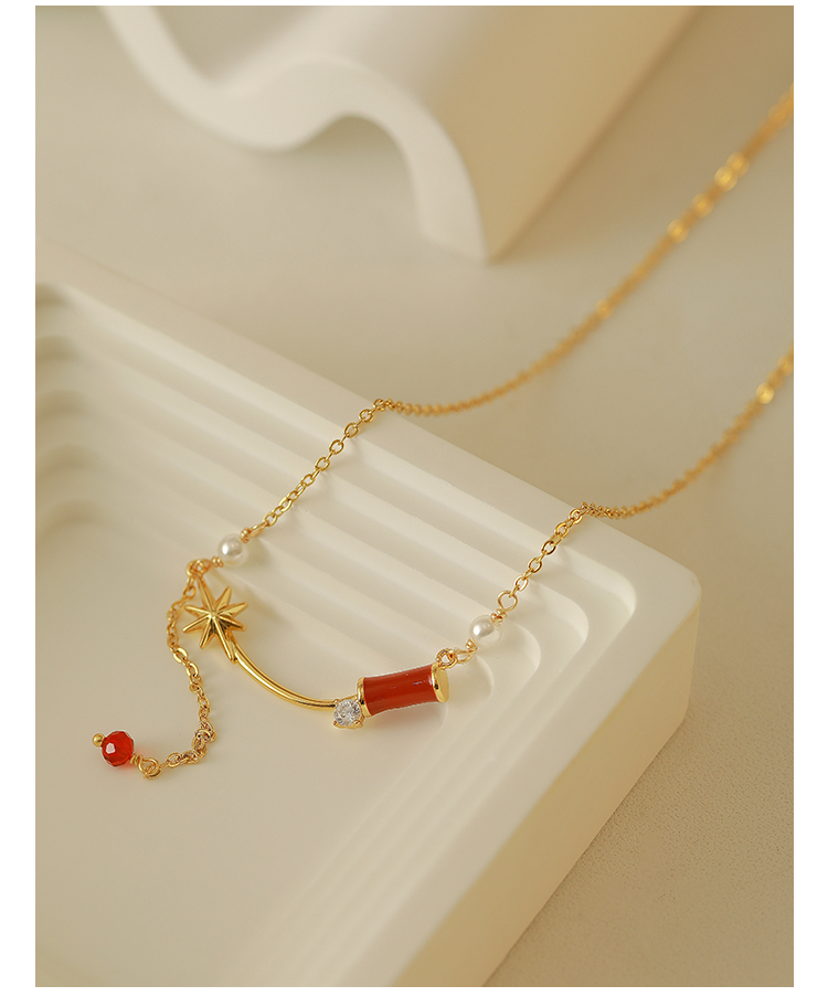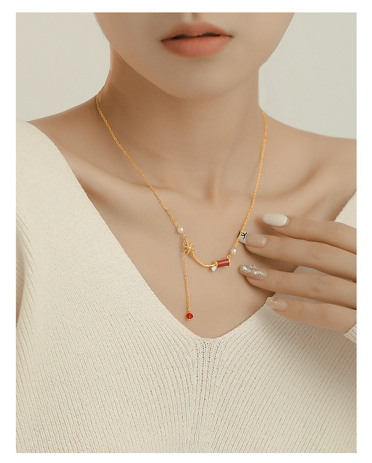歐美簡約高級感本命年紅色竹節項鏈女ins潮冷淡風百搭鎖骨毛衣鏈