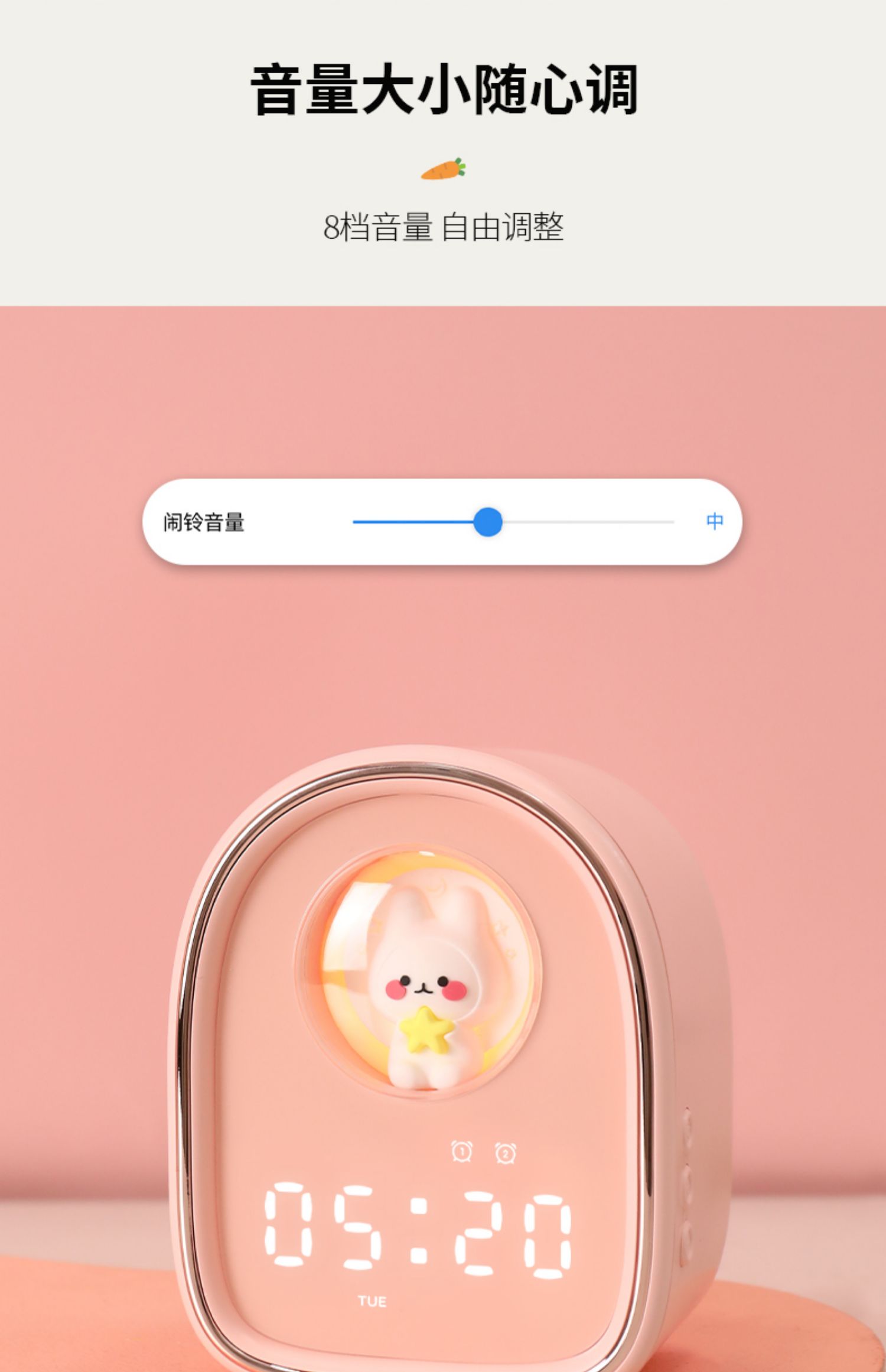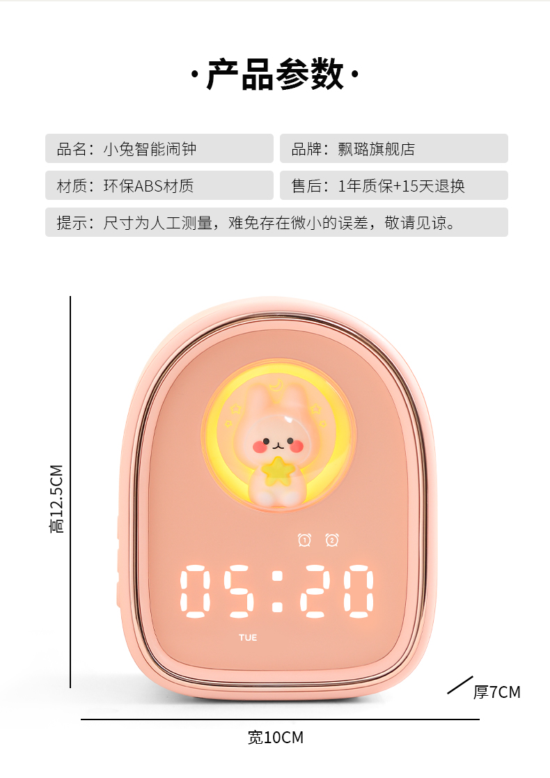 小兔智能兒童鬧鐘女孩靜音電子床頭夜燈2023新款學生專用起床神器