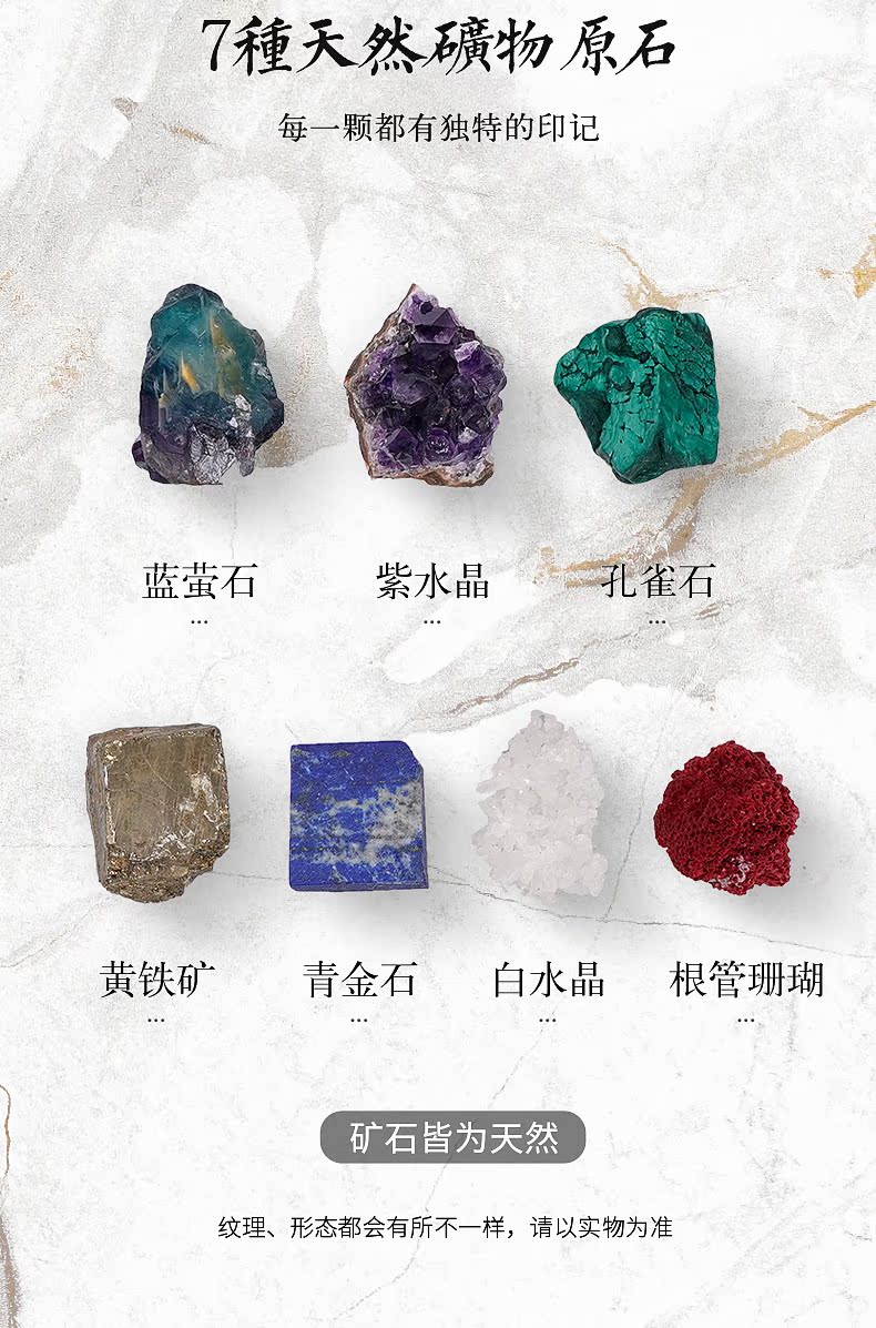 天縱晶華七種天然水晶礦石標本套裝螢石孔雀石原石金屬礦物擺件