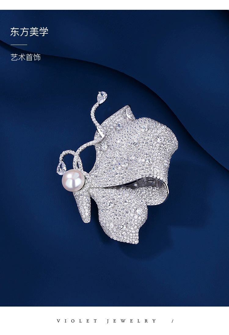 紫羅蘭如珠s925純銀珍珠高檔女胸針
