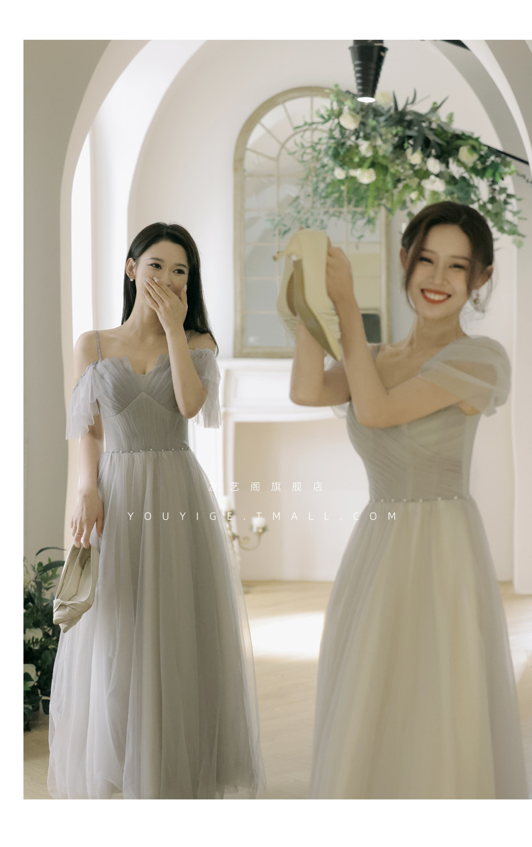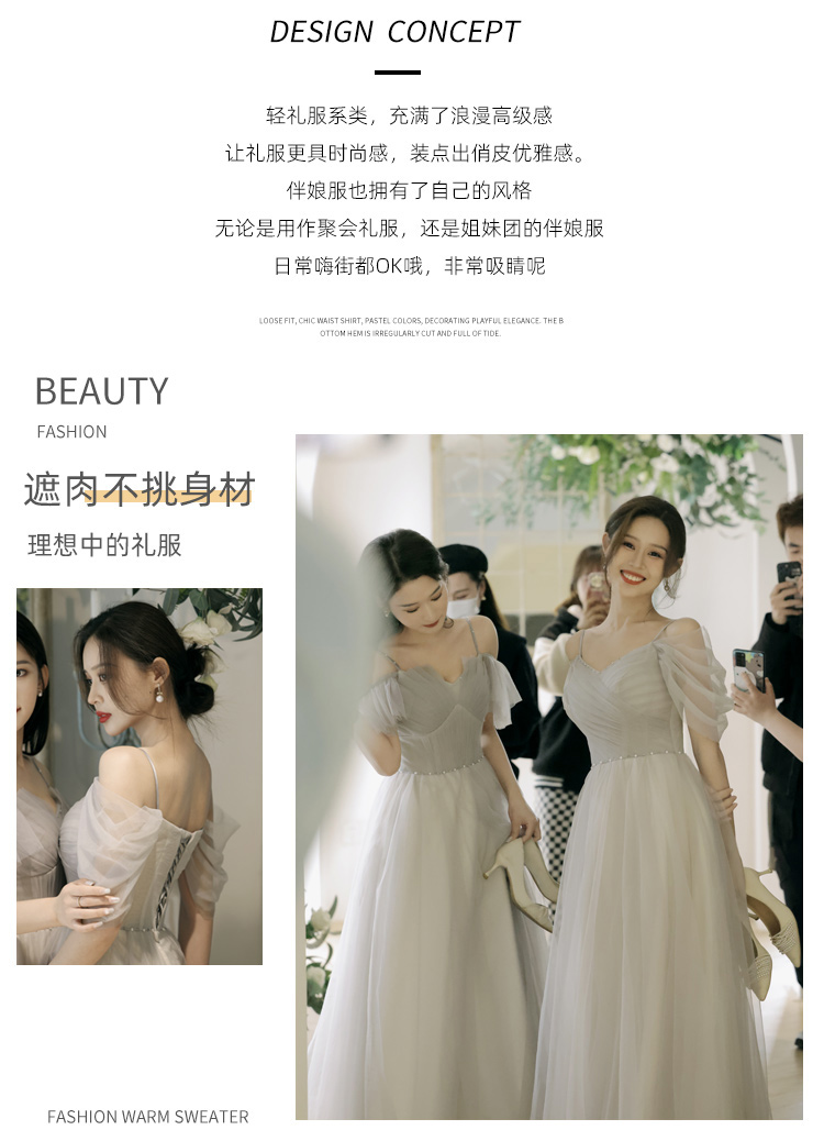 伴娘服灰色姐妹團2023春秋新款平時可穿一字肩顯瘦小眾高級晚禮服