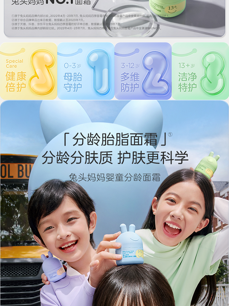 官方兔頭媽媽兒童面霜嬰兒潤膚霜45g寶寶霜潤膚身體乳分齡保濕霜