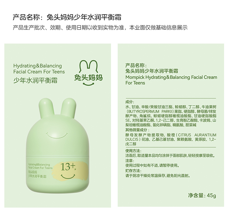 兔頭媽媽面霜正品兒童少年青春期油痘肌洗面奶補水冰潤霜嬰兒面霜