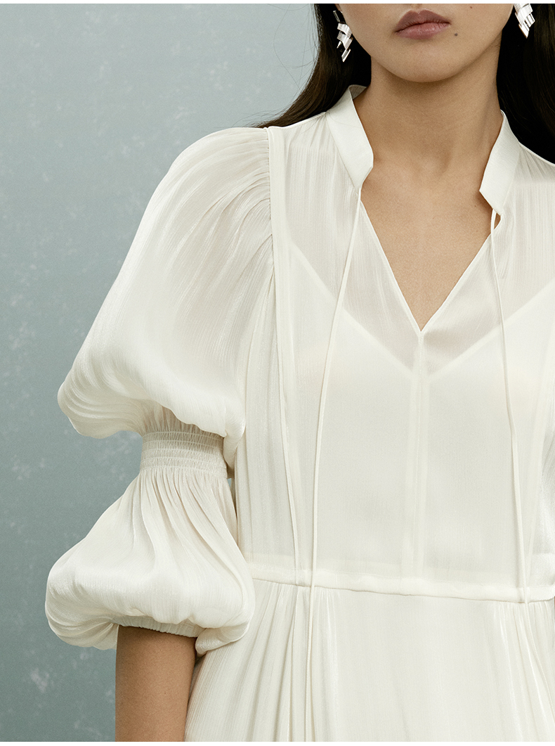 致知ZHIZHI 翠樓 夏季連衣裙2023新款露鎖骨法式白色長裙_三醋酸