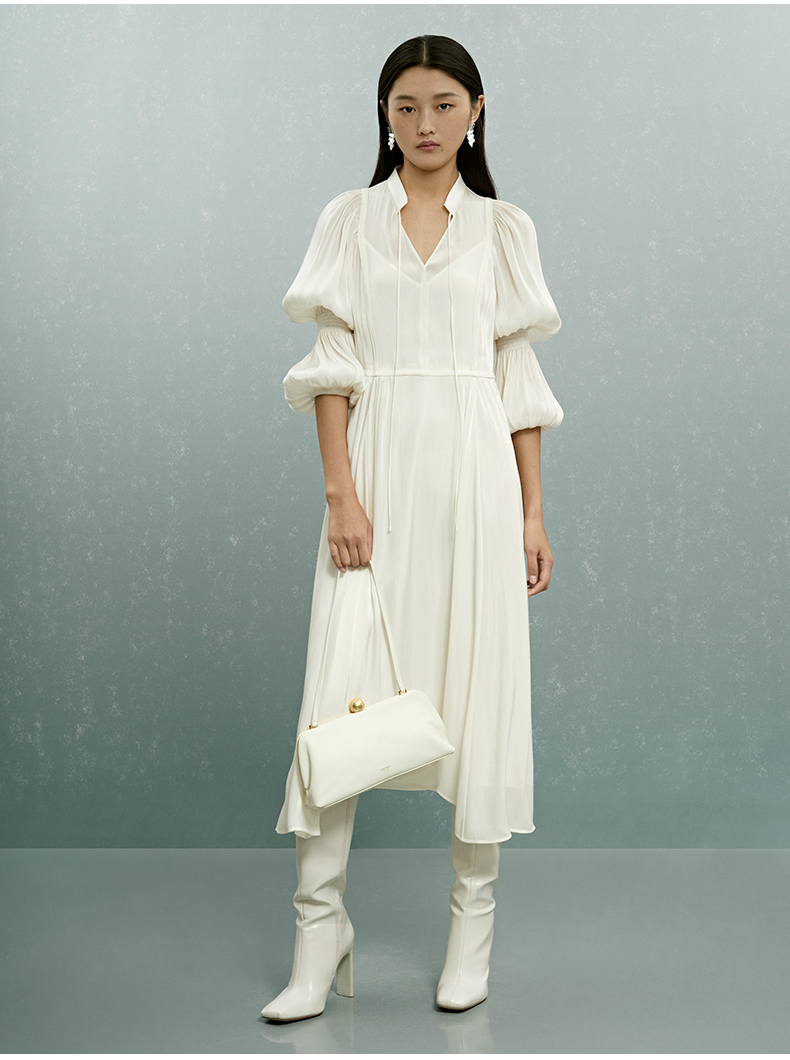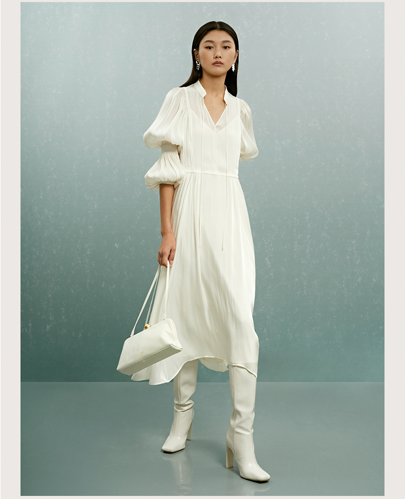 致知ZHIZHI 上林春 茶歇法式連衣裙女2023秋新款高級氣質溫柔白色