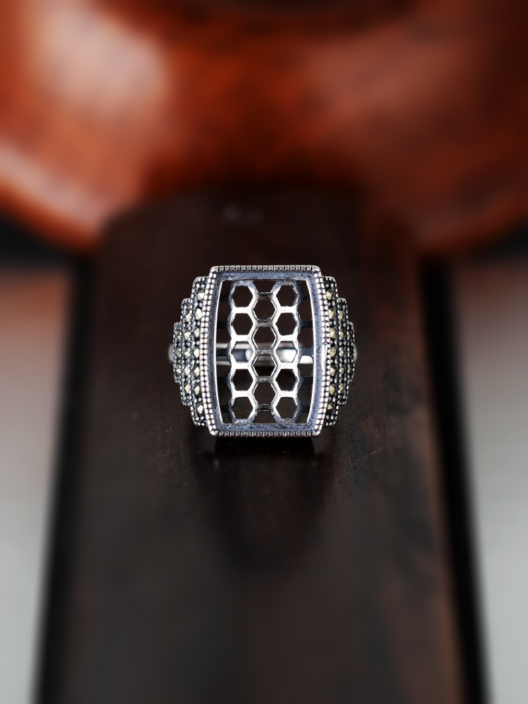 s925空托復古民族風男鑲嵌方銀戒指