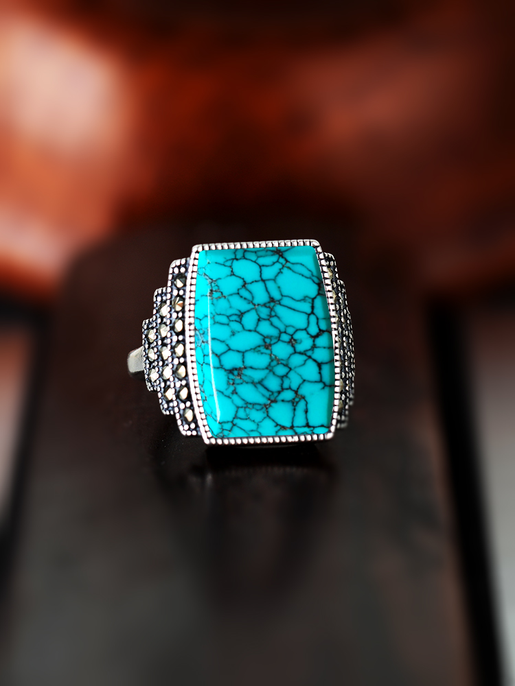 空托s925男士鑲嵌綠松石*純銀戒指