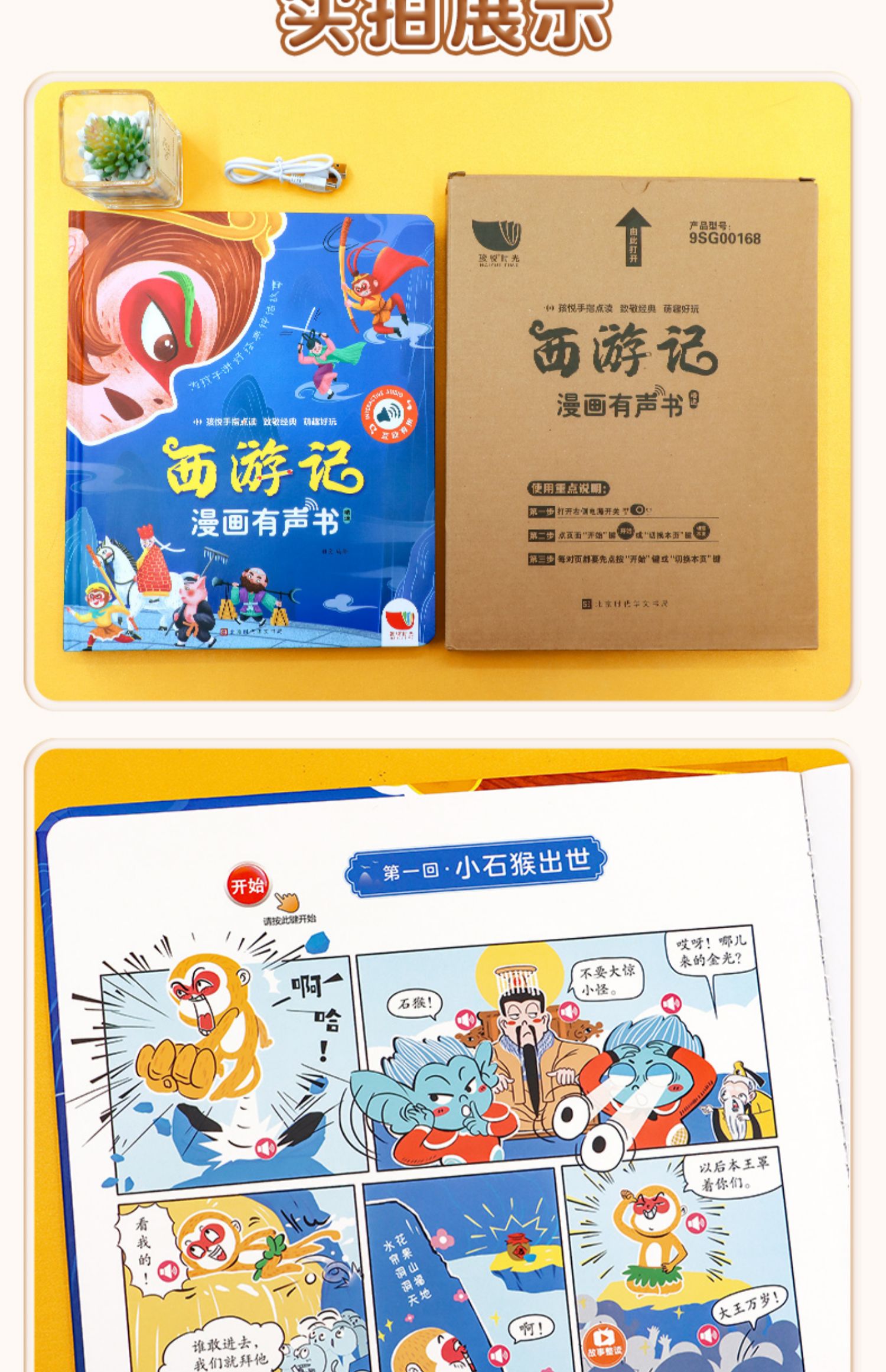 【官方正版】西游記漫畫版有聲書手指點讀發聲書原著正版連環畫四大名著經典名著繪本0到3歲幼兒啟蒙繪本3–6歲會說話的早教故事書
