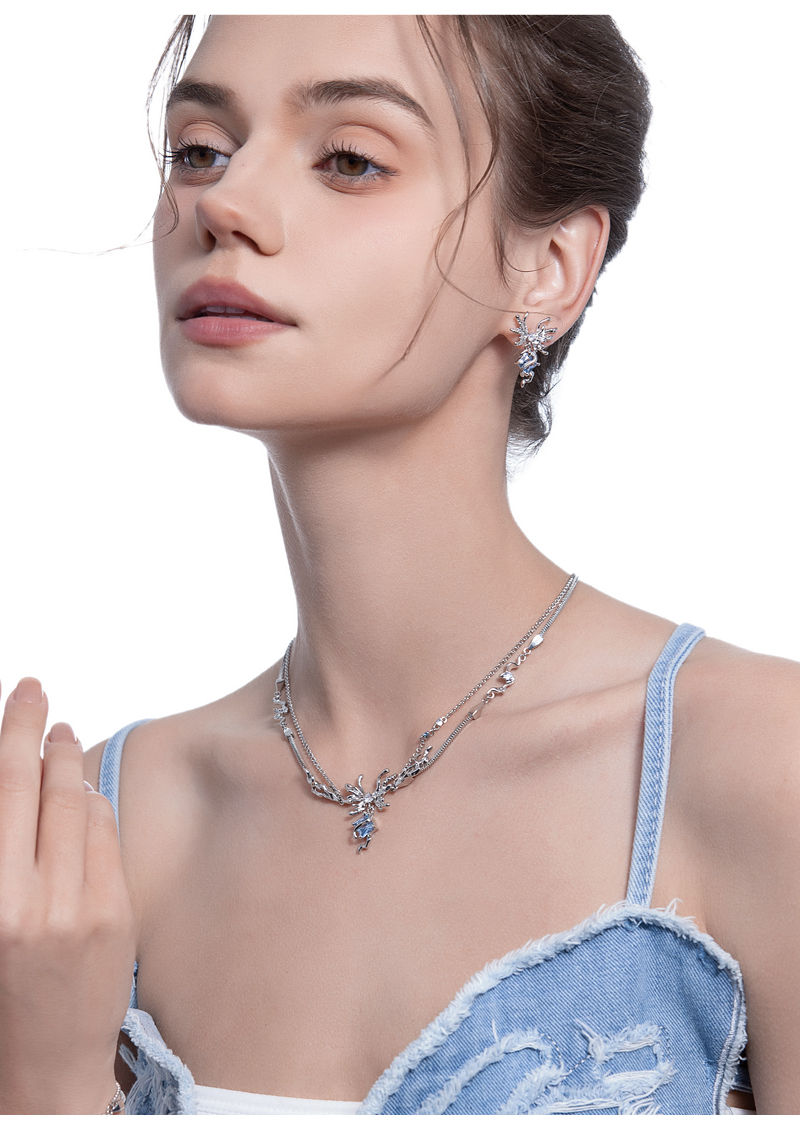MASW麻秀原創設計冰舞系列小眾蝴蝶鋯石項鏈高級感輕奢氣質毛衣鏈