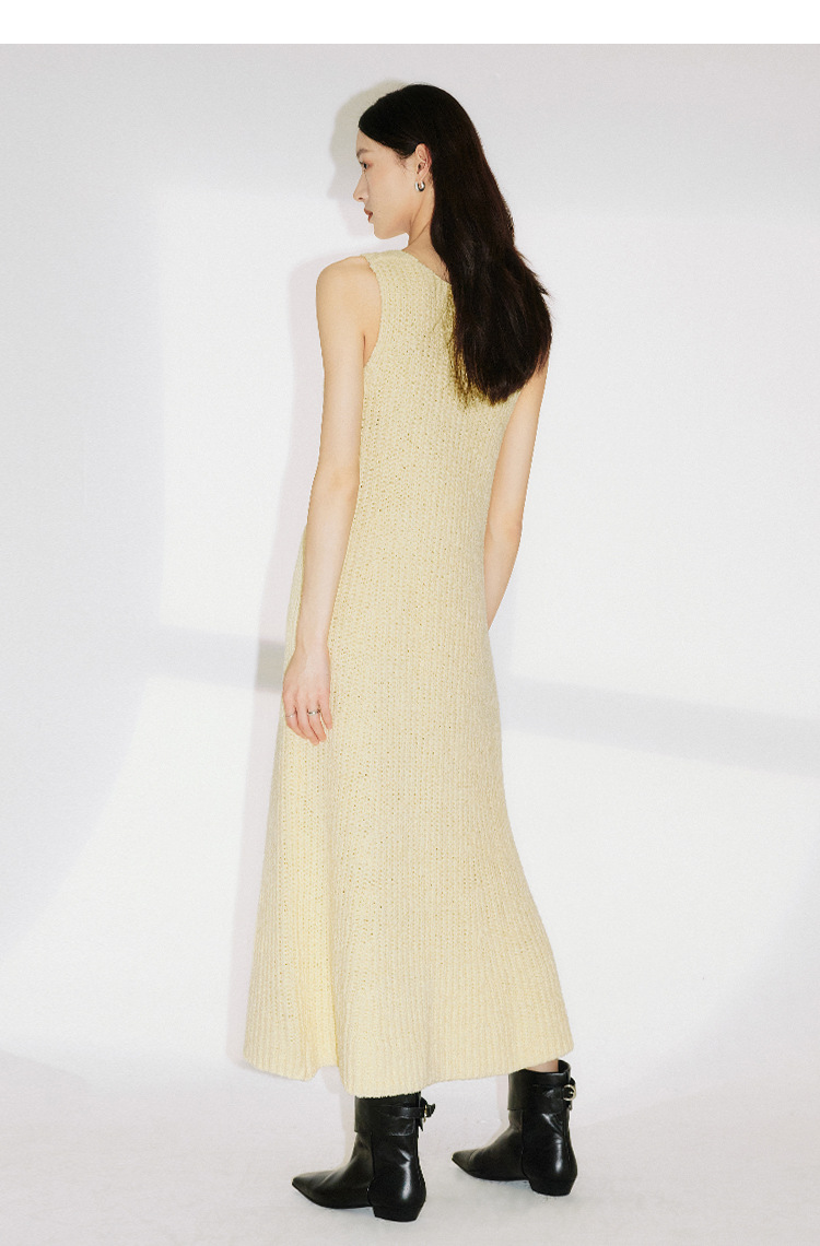 LTOO COLINE灰色棉質粗棒針毛織裙長款連衣裙女背心裙高腰圓領