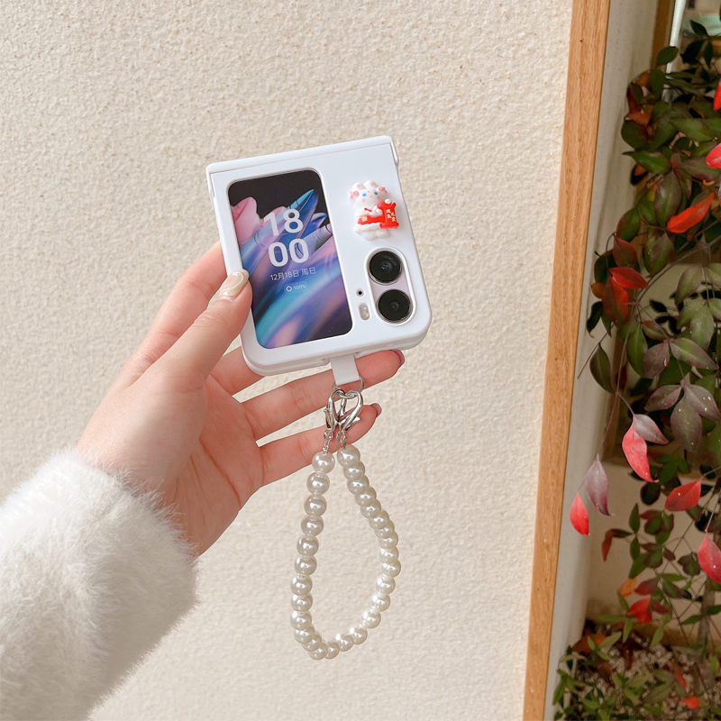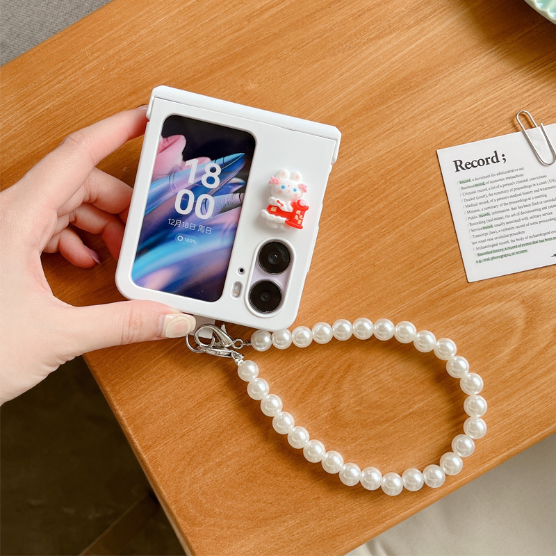 適用oppofindn2flip手機殼原裝官方全包女款兔子手提鉸鏈保護殼findn2flip折疊屏新款可愛超薄防摔掛繩手機套
