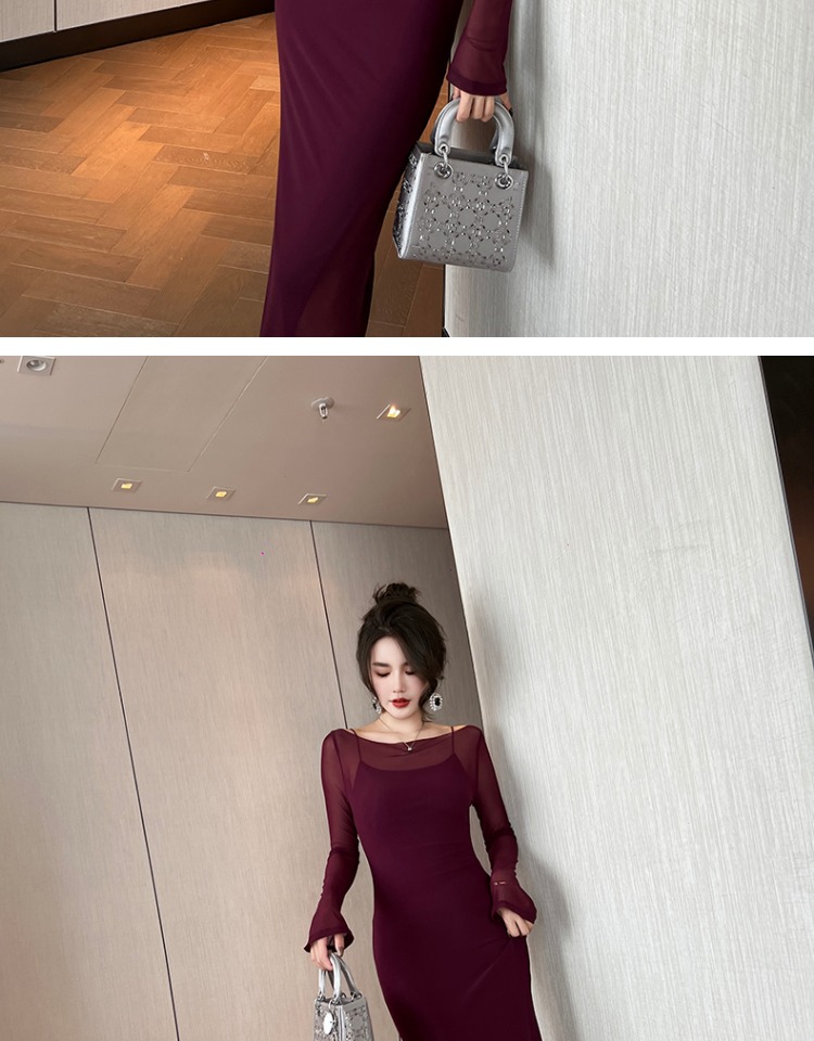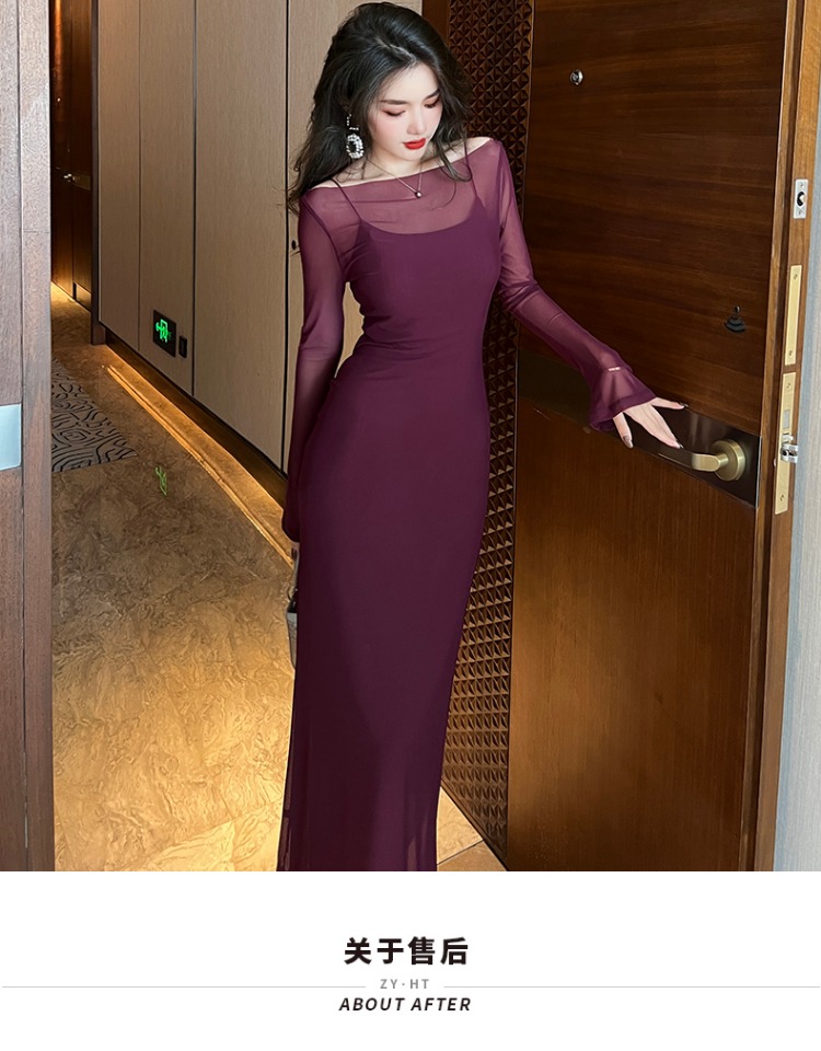 法式赫本風御姐性感連衣裙秋裝新款兩件套高級感修身顯瘦罩衫長裙