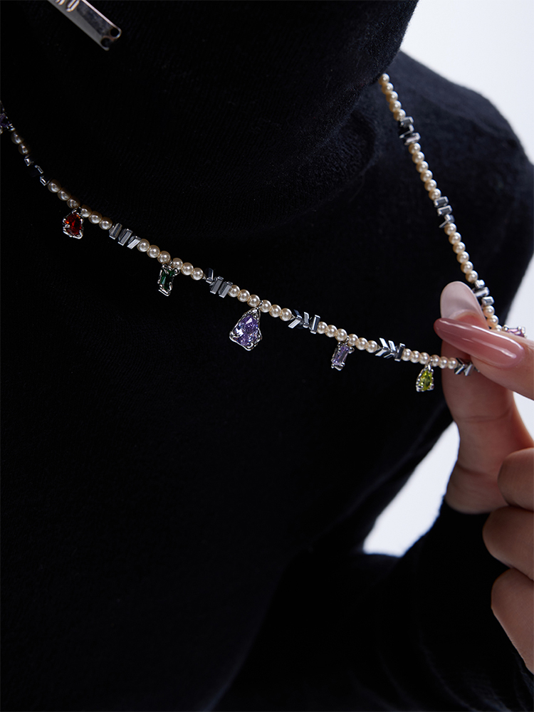 奇妙迷人眼|DOUBLEEL小眾設計高級感時髦珍珠彩色寶石輕奢項鏈女