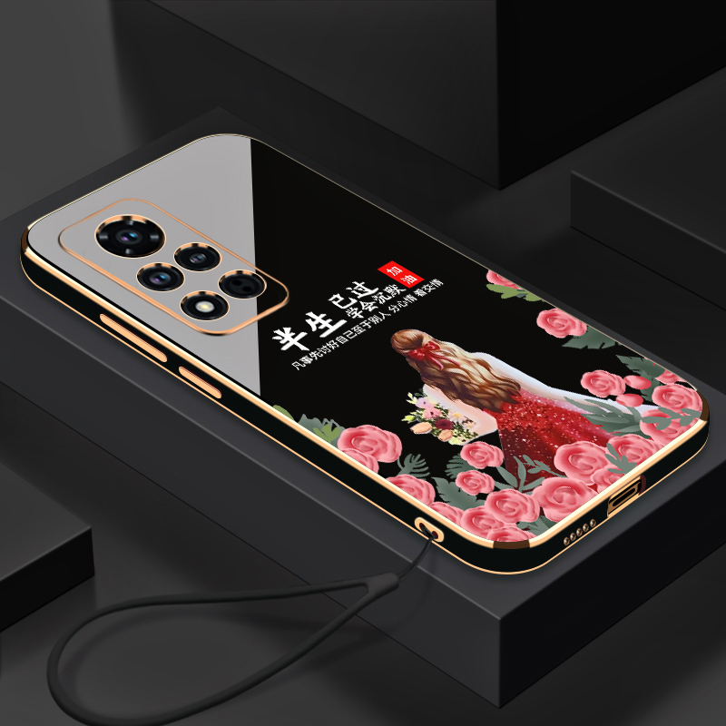 電鍍紅裙學會沉默華為榮耀V40手機殼全包鏡頭個性簡約Honor時尚創意硅膠防摔榮耀v40電鍍軟殼女款新品保護套