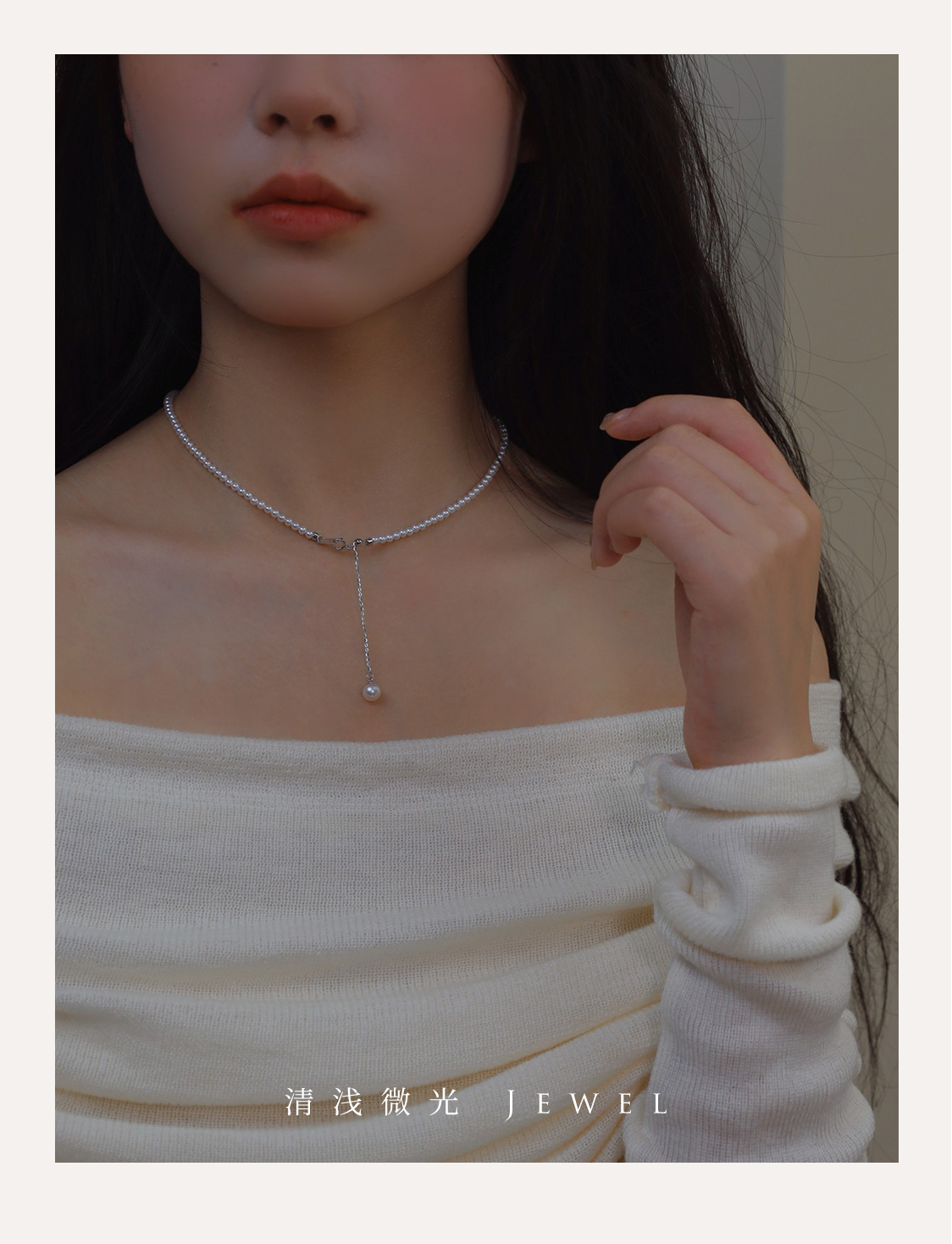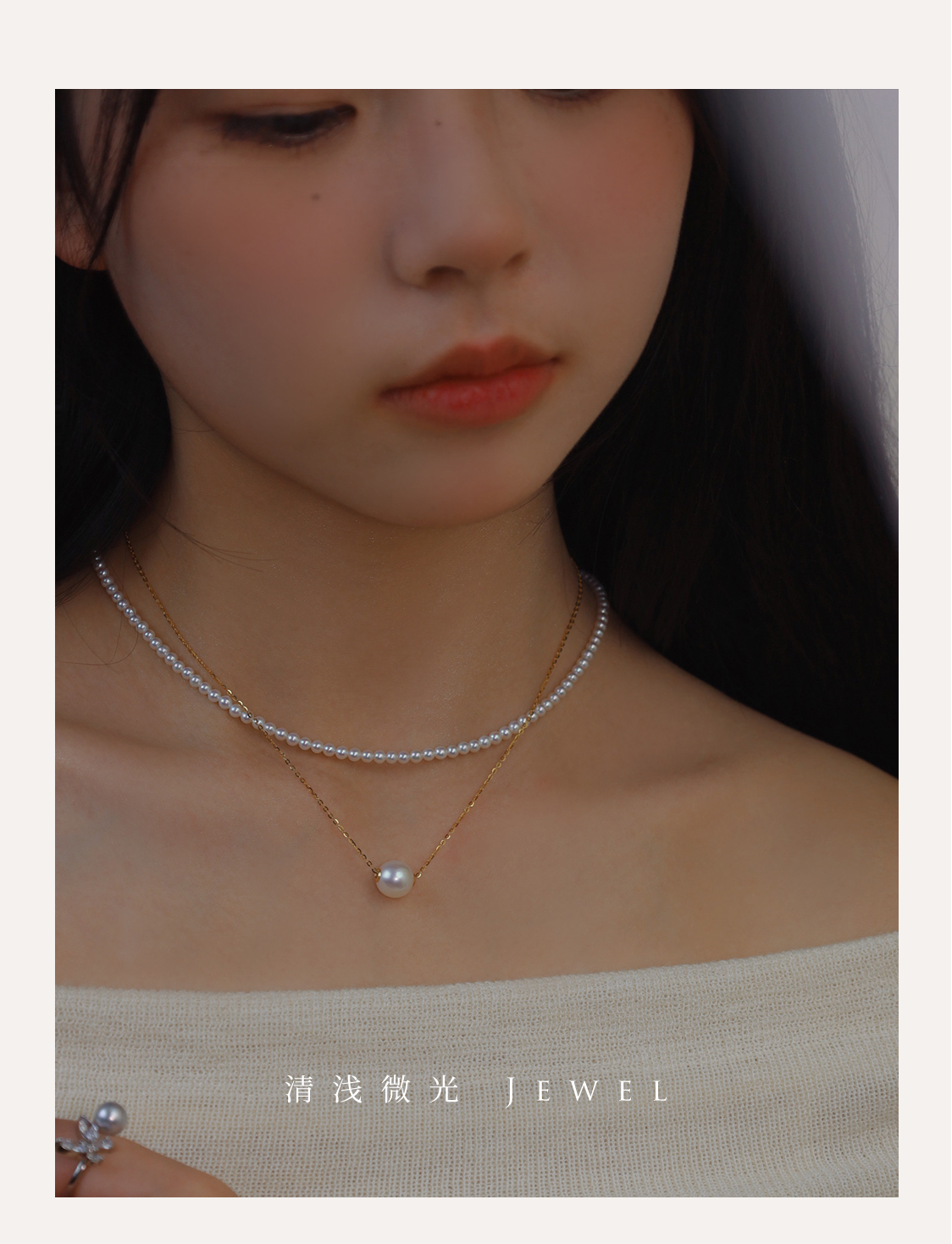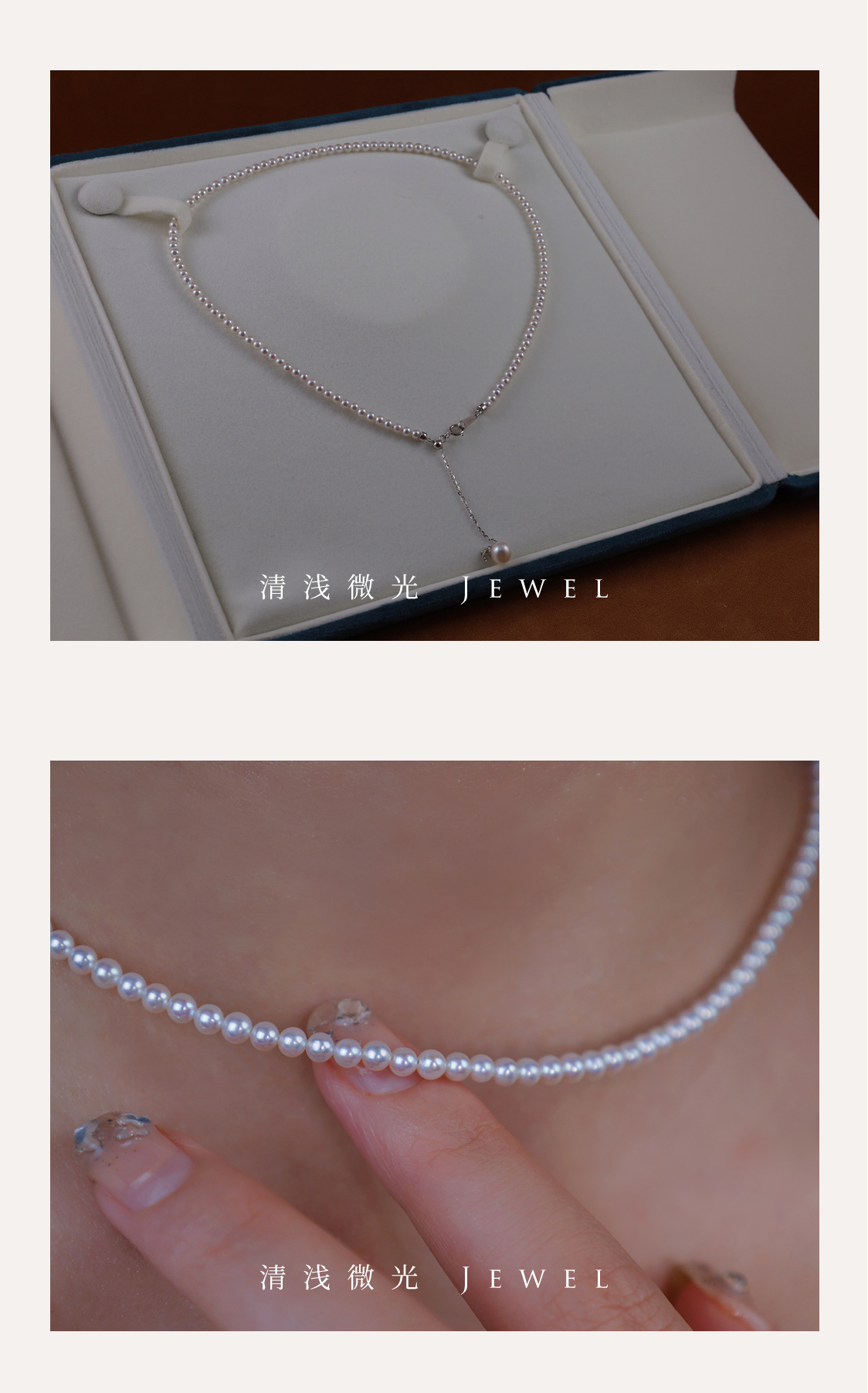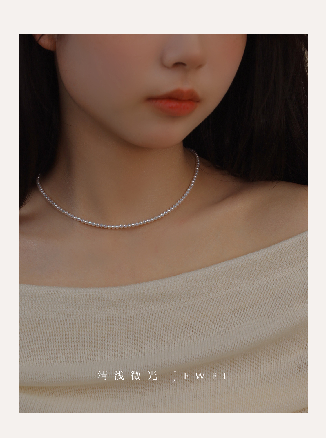 清淺微光丨經典冷淡氣質感天然淡水極光正圓無暇baby鏈珍珠項鏈