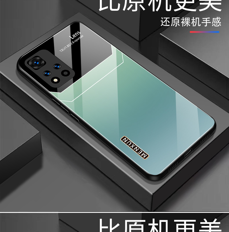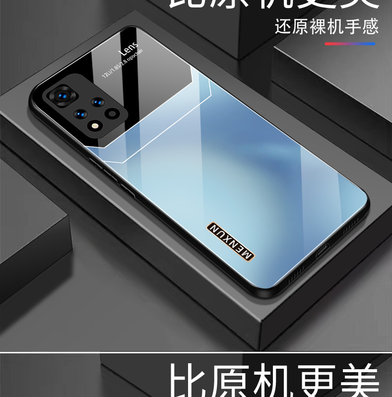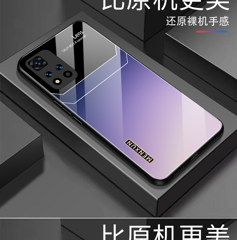 適用紅米NOTE11PRO+手機殼玻璃redminote11pro+超薄漸變男女防摔全包外殼