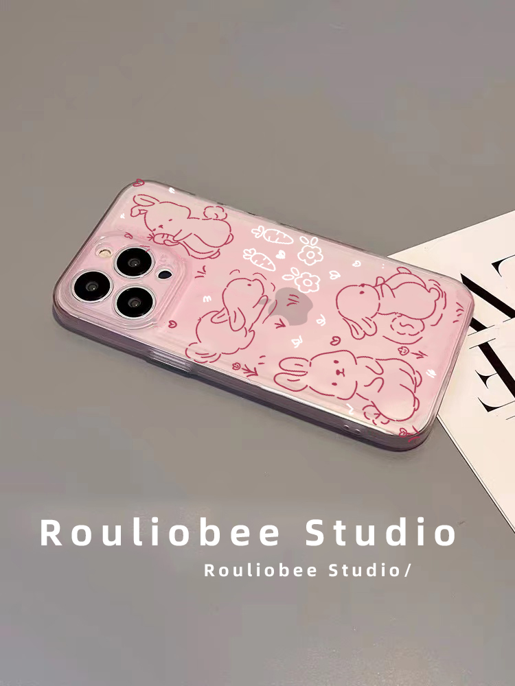卡通可愛超萌兔子小狗適用蘋果14手機殼情侶iphone13promax新款12女11防摔14pro硅膠13pro小眾保護套xs軟殼xr
