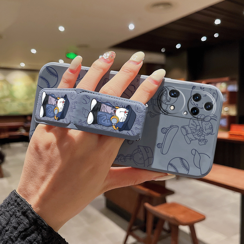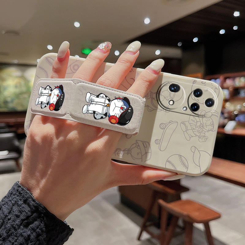 適用華為P50手機殼男款P50Pro磁吸支架HUAWEIP40/P30/20/10防摔折疊腕帶男款哆啦A夢個性潮牌可橫豎屏手機套