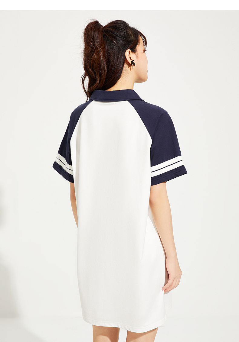 熱風2023夏季新款女士撞色插肩袖印花連衣裙學院風甜美polo領裙子