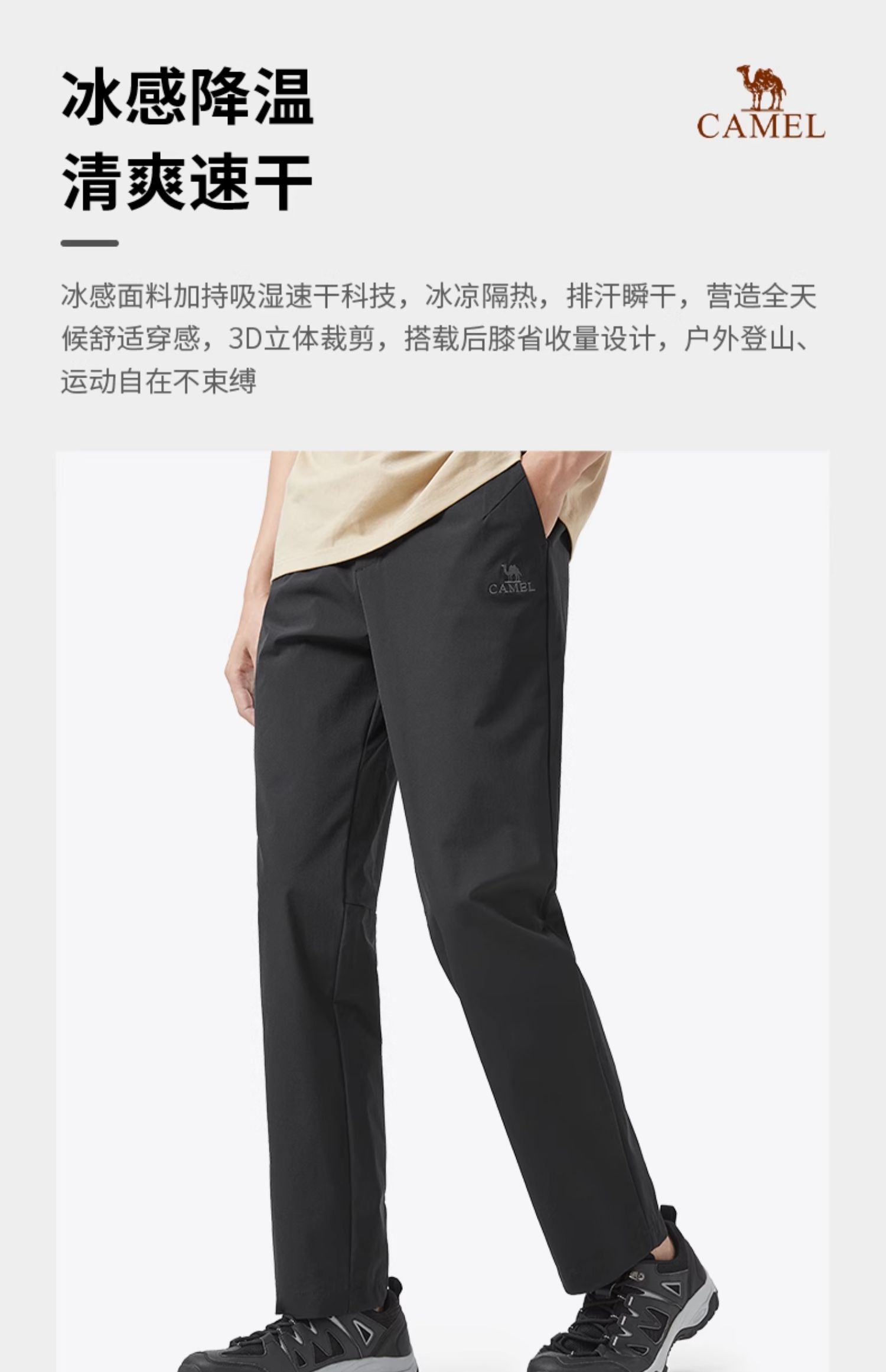 駱駝男裝休閑褲2023春季男士寬松直筒長褲透氣運動褲速干登山褲